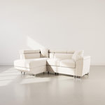 Transformez votre salon en un espace à la fois chic et accueillant avec le Baoji, un canapé d'angle gauche 5 places conçu pour sublimer votre intérieur. Son revêtement en velours côtelé, d'une douceur exquise, invite à la détente tout en ajoutant une touche de caractère à votre décoration. Ses pieds en métal chromé, élégants et raffinés, créent un contraste moderne qui attire tous les regards. Grâce à ses têtières ajustables, adaptez votre confort selon vos envies et profitez d'un maintien optimal pour des instants de relaxation absolue.