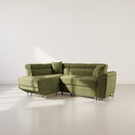 Baoji - canapé d'angle gauche 5 places convertible avec têtières et coffre en velours côtelé