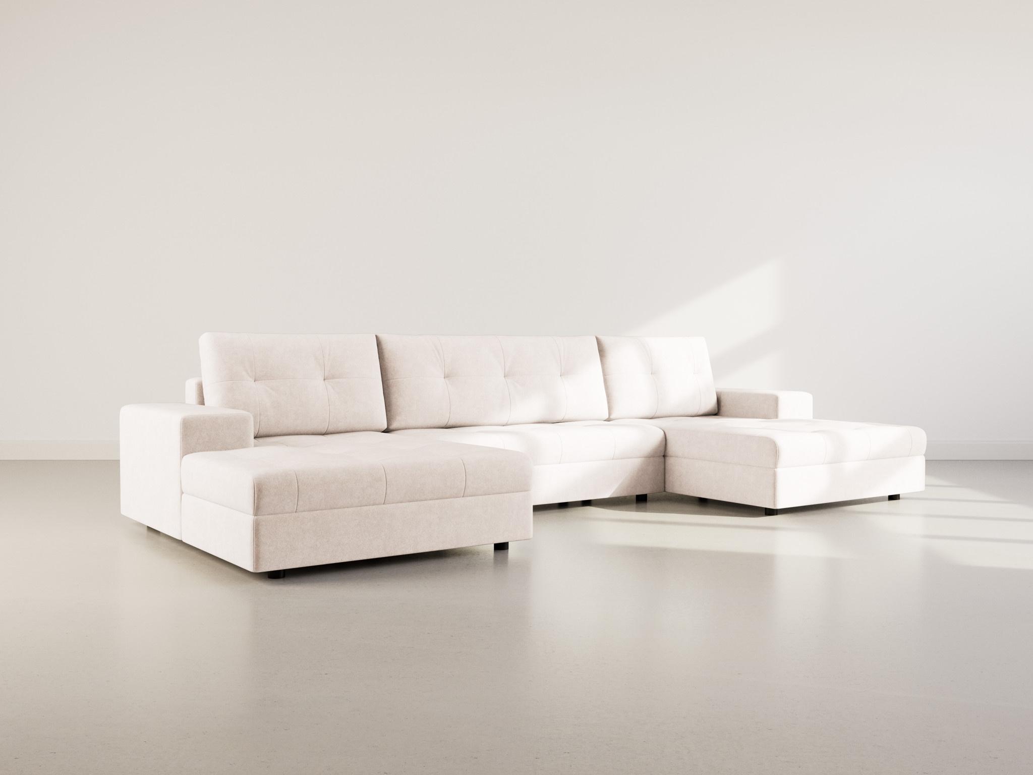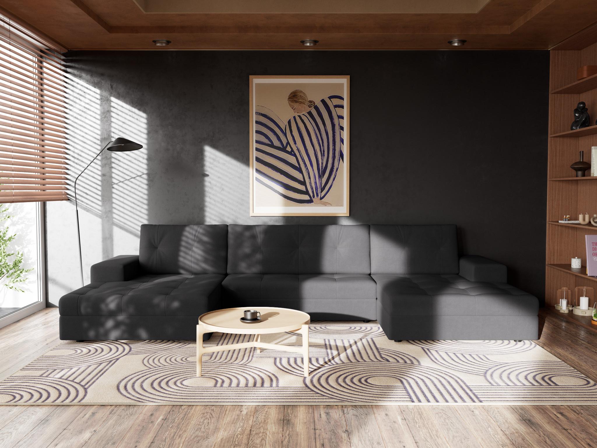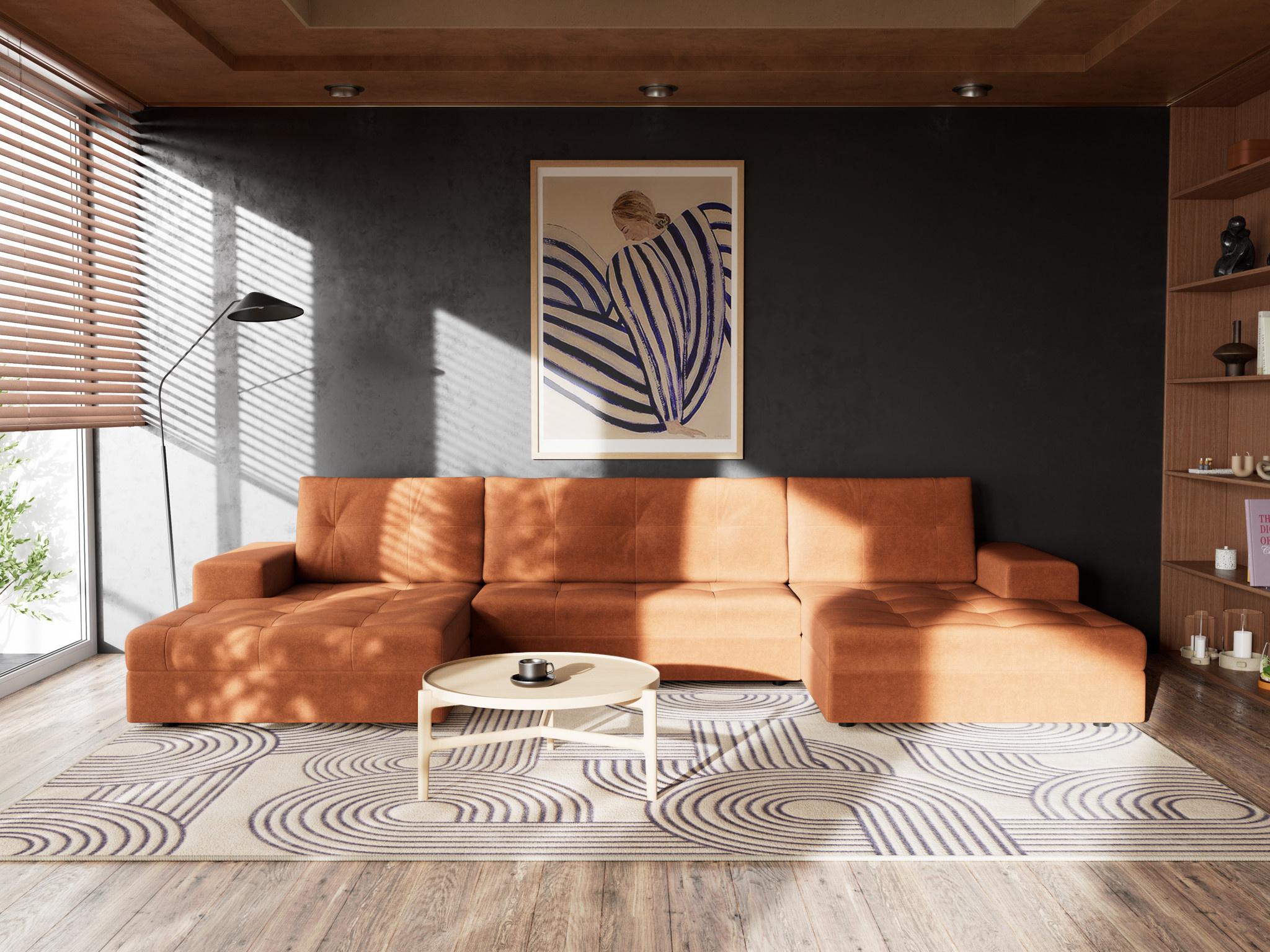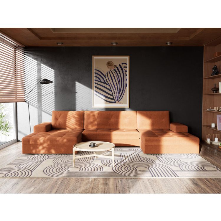 Offrez à votre salon une allure majestueuse avec le canapé panoramique Bastian 7 places. Son format en U généreux crée un espace de détente exceptionnel, idéal pour les grandes familles ou pour recevoir en toute convivialité. Revêtu d'un velours texturé ultra doux, il séduit par son aspect chic et sa sensation au toucher. Avec son design élégant et sa fabrication européenne soignée, le Bastian impose son style tout en vous enveloppant de confort.