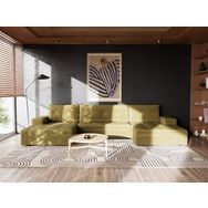 Bastian - canapé panoramique en u 7 places convertible avec coffre en velours texturé