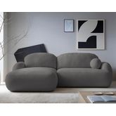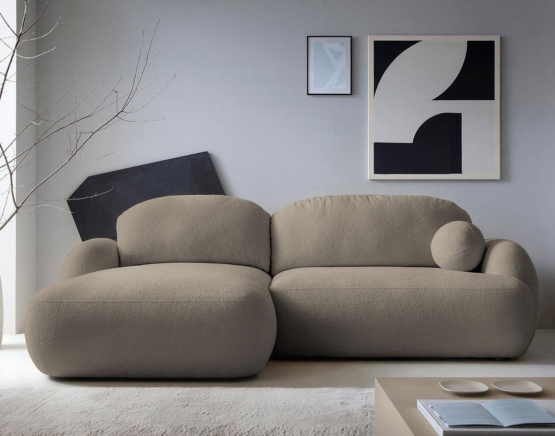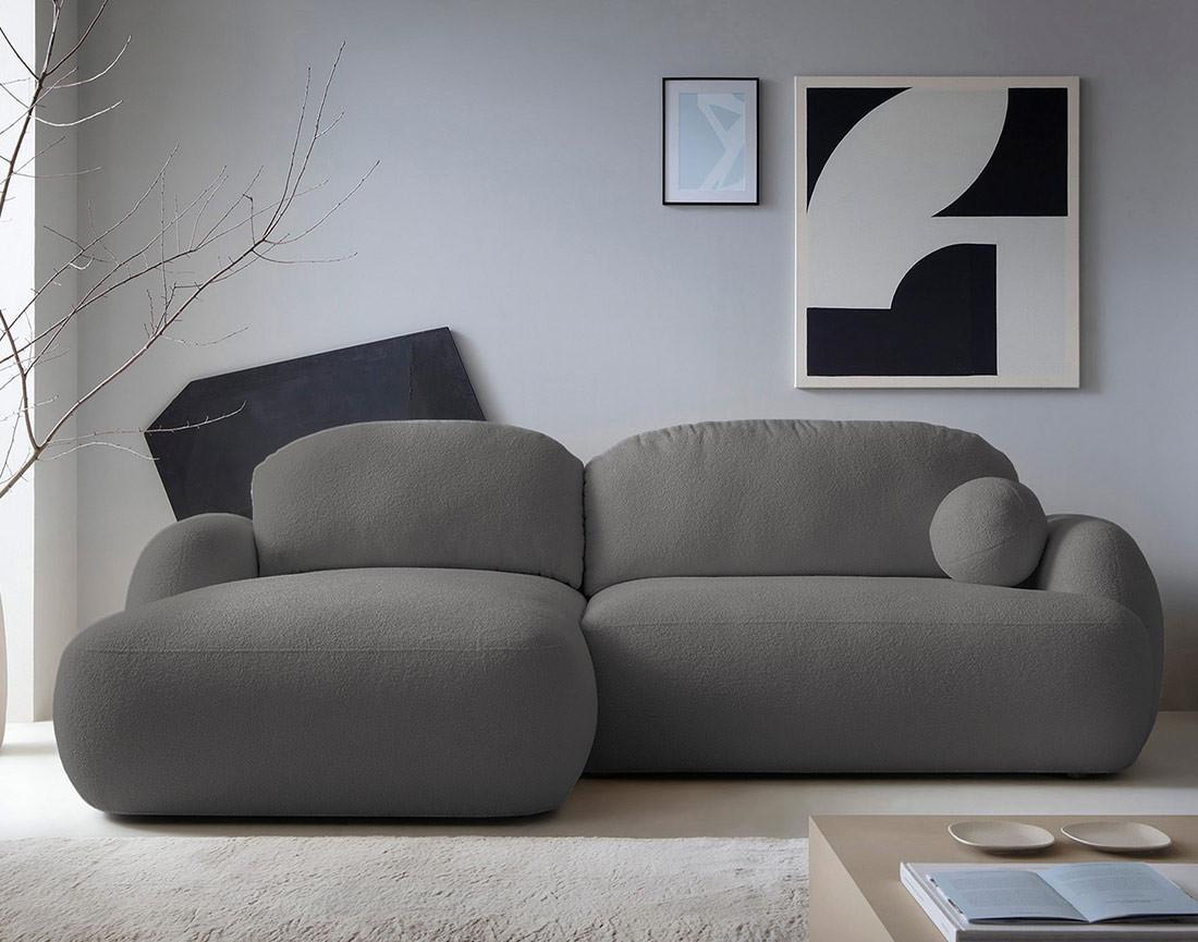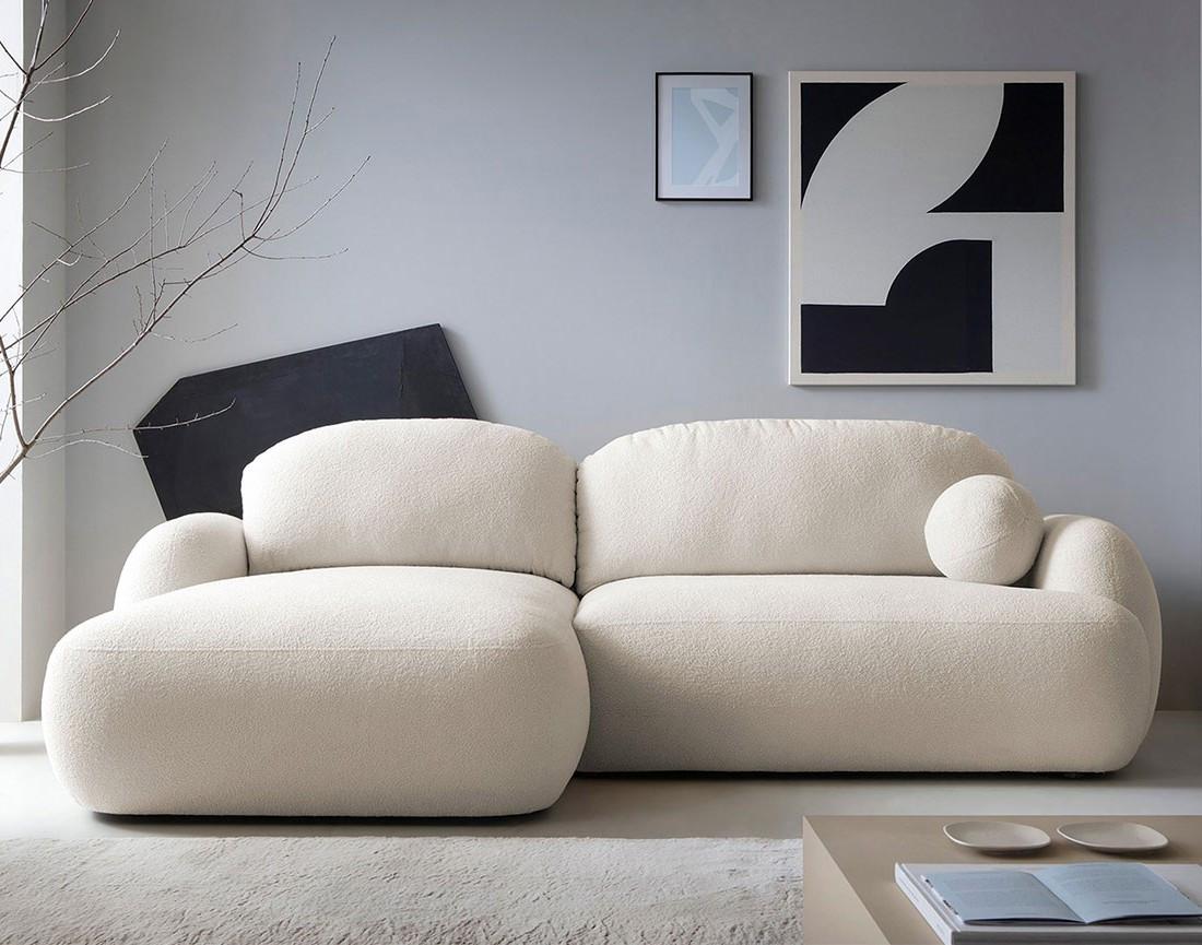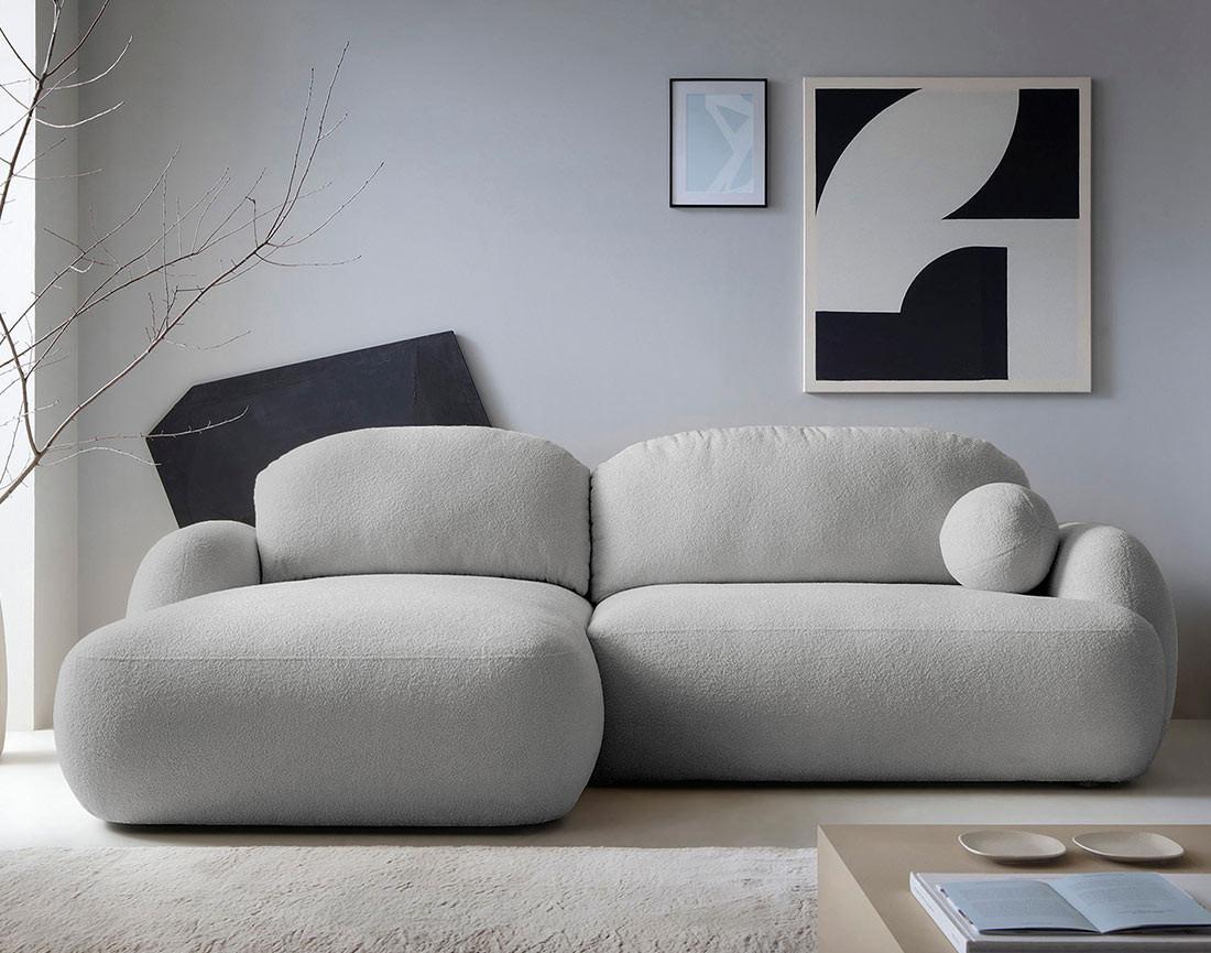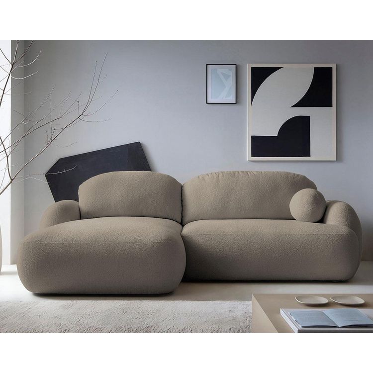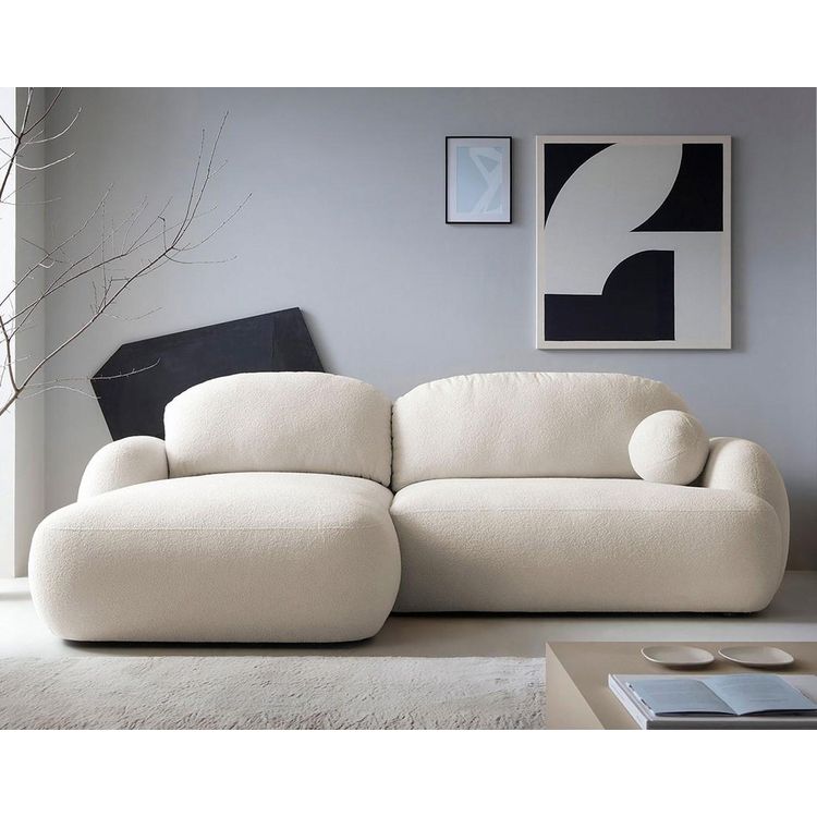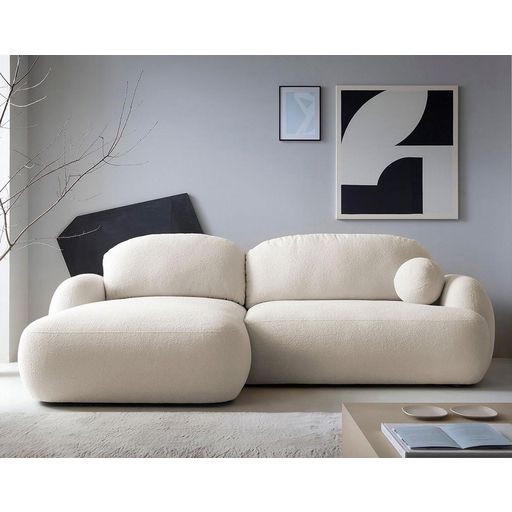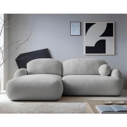 - Présentation de la collection : Appréciez les formes douces et arrondies ainsi que les fonctionnalités du canapé d'angle Berenice 4 places en tissu bouclette.