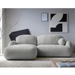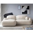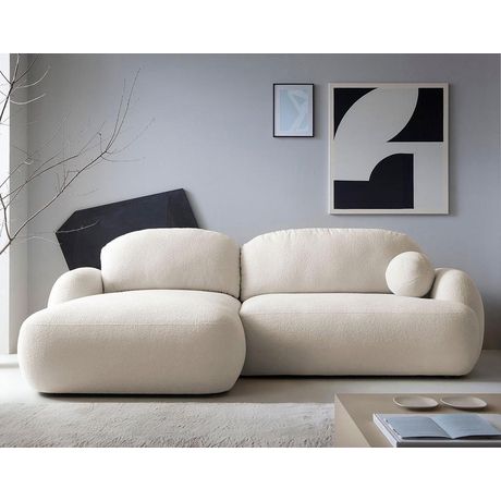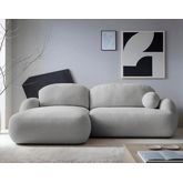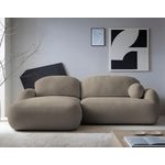 Le canapé d'angle Berenice est conçu pour offrir à la fois style et fonctionnalité. Avec sa capacité d'accueil de 4 personnes, il présente un design moderne aux lignes douces et arrondies, recouvert d'un tissu bouclette texturé, apportant une sensation chaleureuse et confortable. Ses coussins d'assise sont généreusement rembourrés, tout comme les dossiers pour un confort optimal. Les accoudoirs épais et arrondis renforcent l'aspect douillet du canapé.
