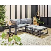 Beyla – salon de jardin modulable en acier noir - 4 places - coussins gris