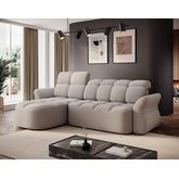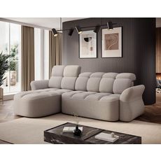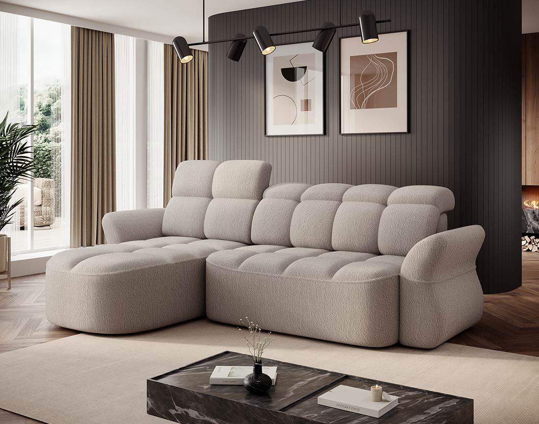 Brume - canapé d'angle gauche 4 places convertible électrique avec coffre et têtières réglables en tissu bouclette