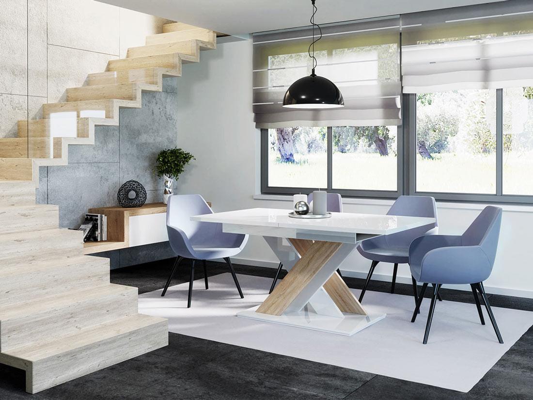 Buriti - table à manger extensible - blanc et chêne clair - 4 à 6 personnes