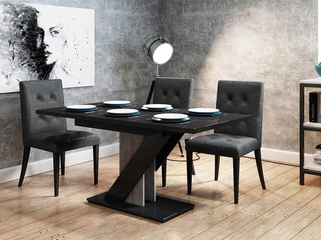 Burnie - table à manger extensible - noir et effet béton - 4 à 6 personnes
