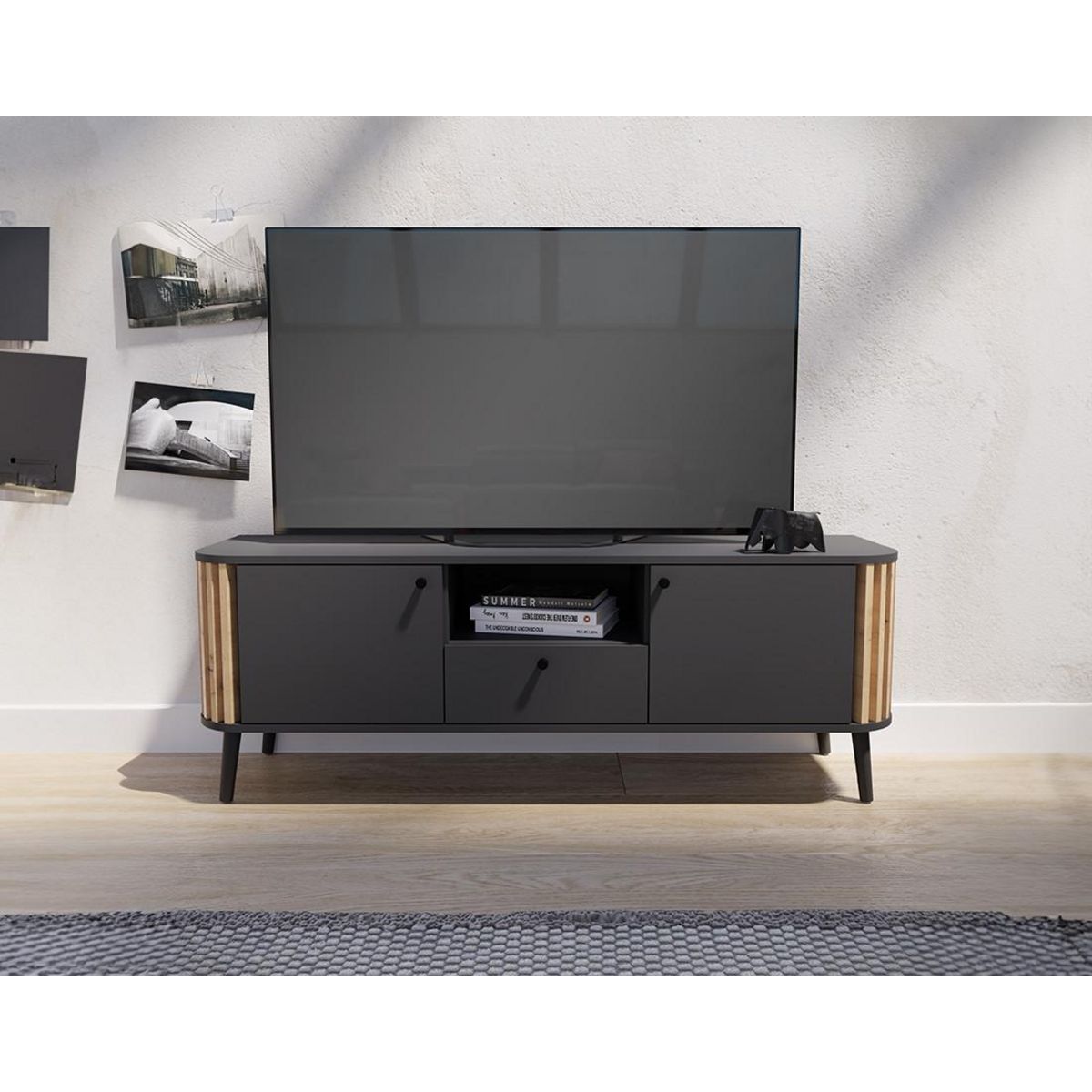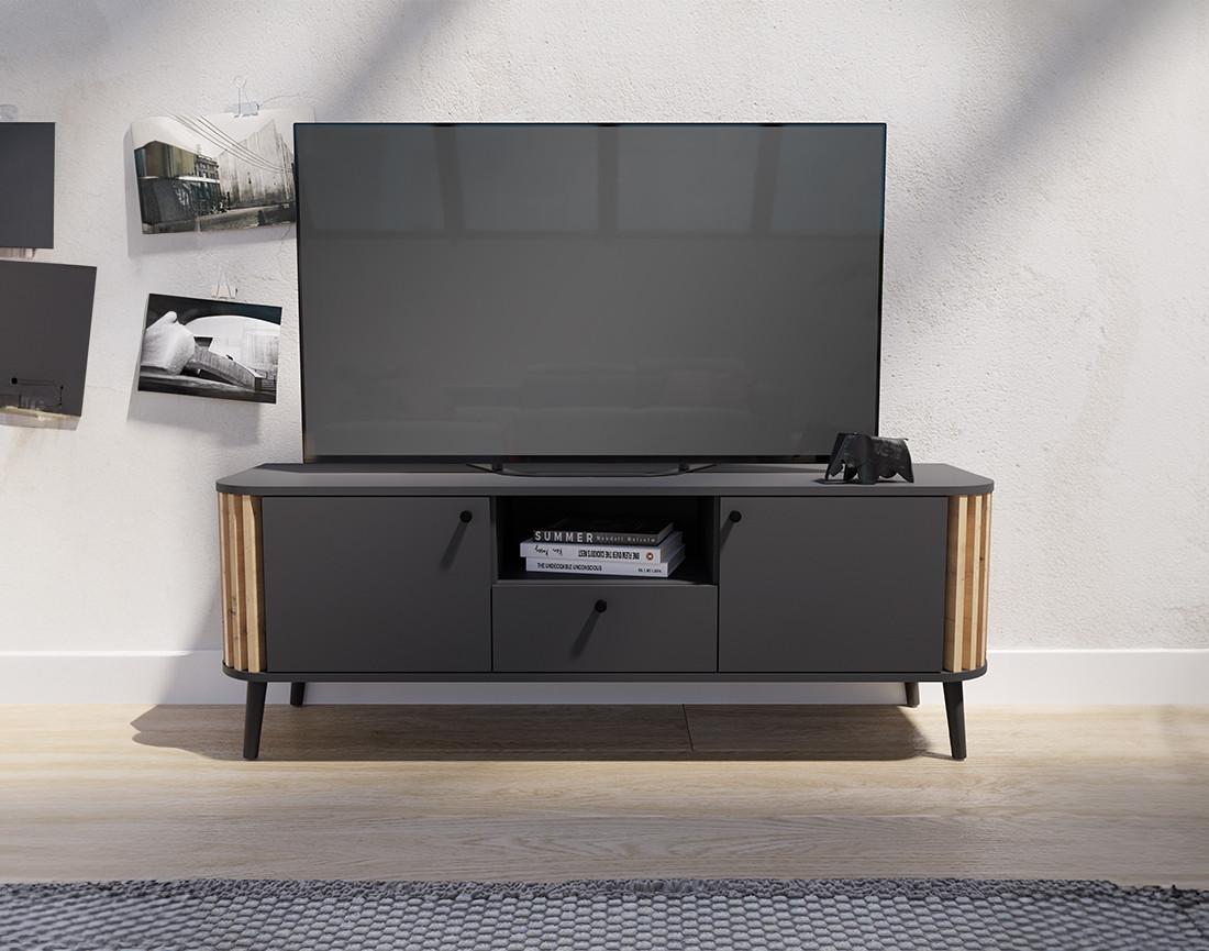 Camberwell - meuble tv - gris et effet bois - 2 portes, 1 tiroir et 1 niche - 138 cm