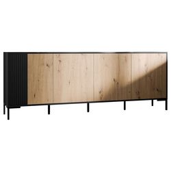 Cambridge - buffet bas - effet bois et noir - 4 portes - 200 cm