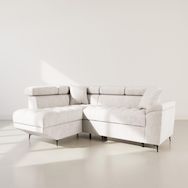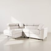 Camille - canapé d'angle gauche 5 places convertible avec têtières et coffre en velours texturé
