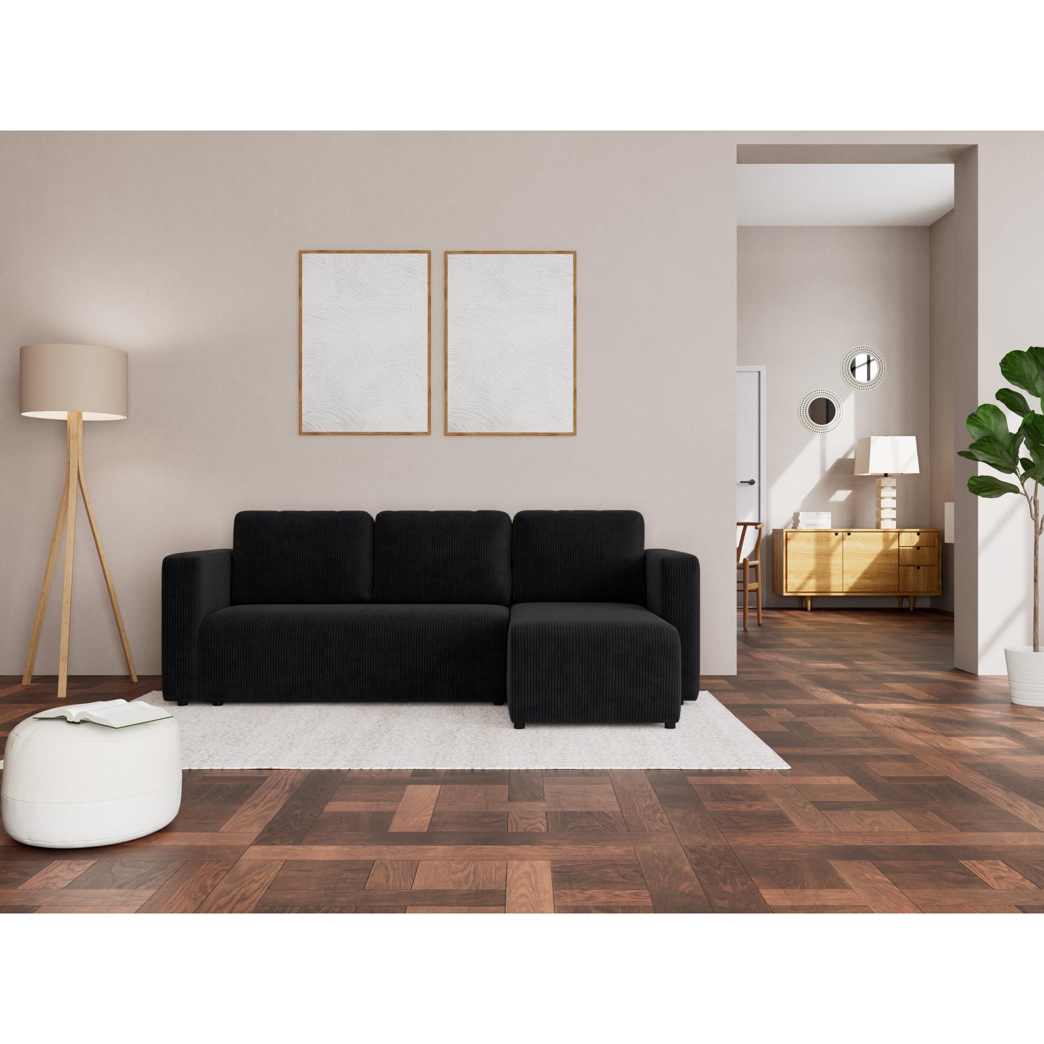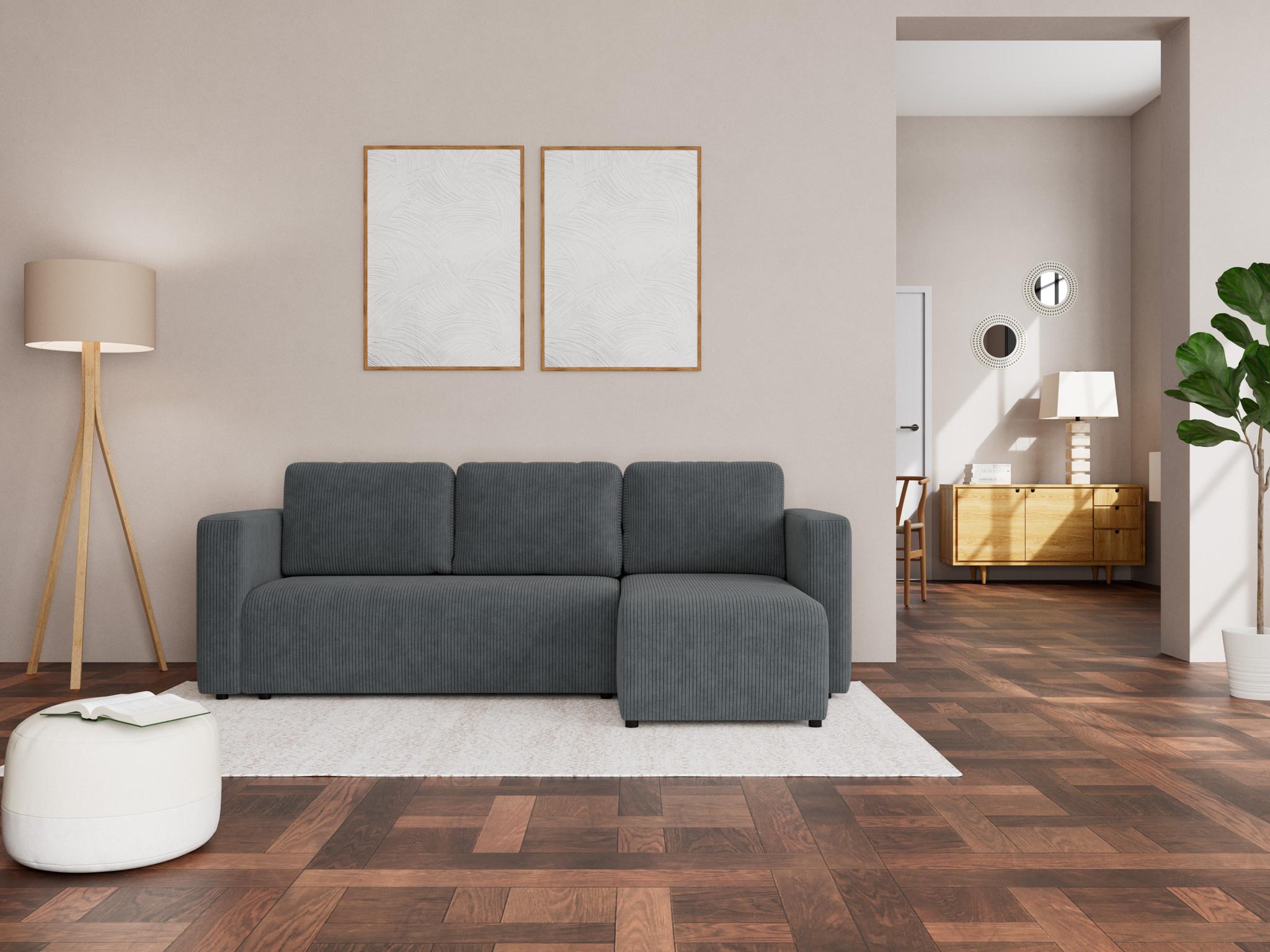 Canopy - canapé d'angle réversible 4 places convertible avec coffre en velours côtelé