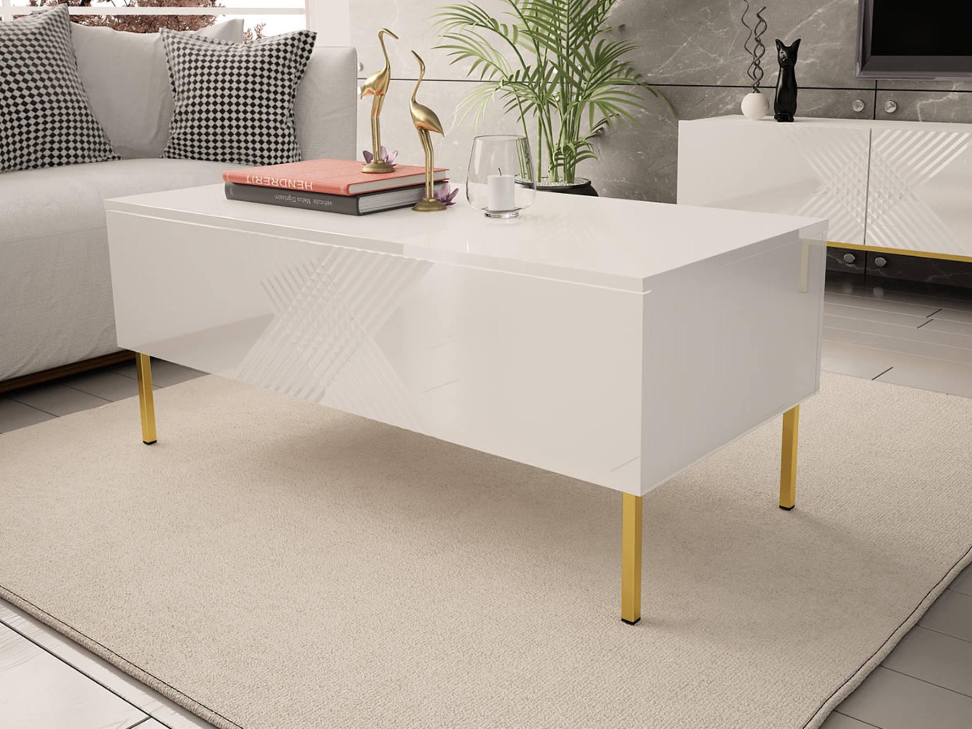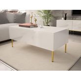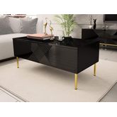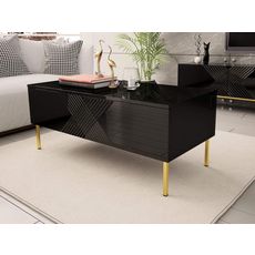Inspiré du design moderne, la table basse Celeste aux façades arborées de lignes géométriques et aux pieds en métal doré apportera de l'élégance à votre salon.