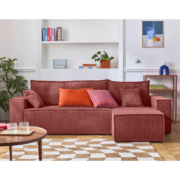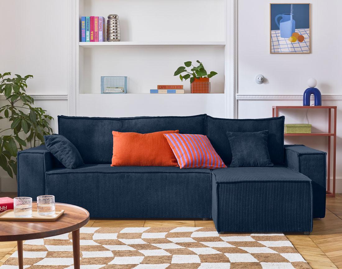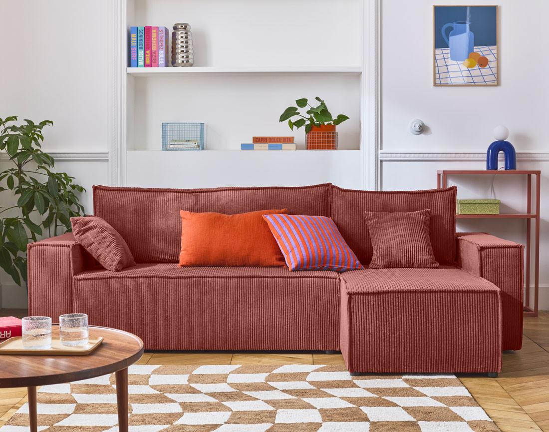 Profitez d'une pause moelleuse ou d'un agréable moment avec vos proches en vous installant dans le canapé d'angle 4 places Cezanne. Ses lignes épurées et son revêtement en velours côtelé, doux au toucher, vous séduiront à coup sûr !