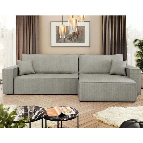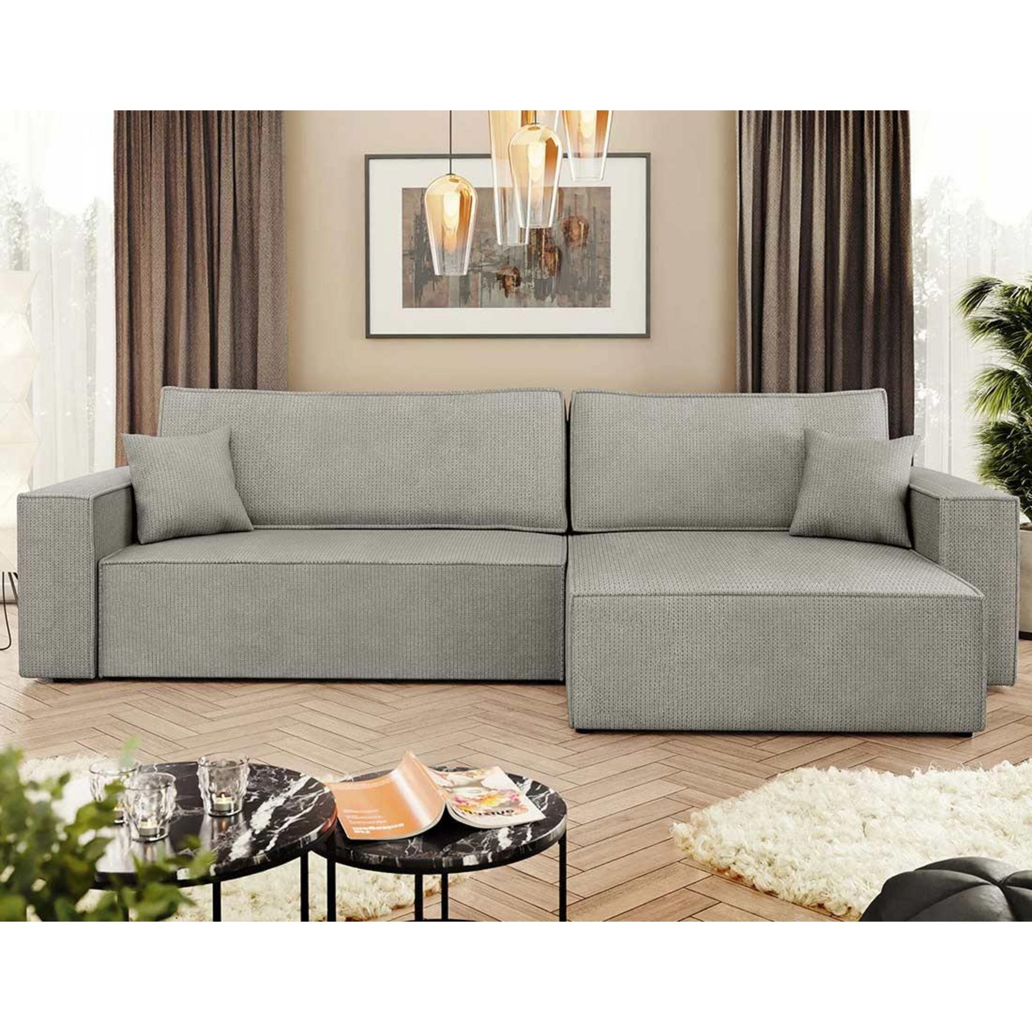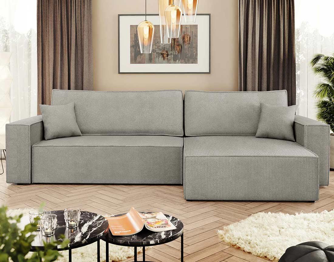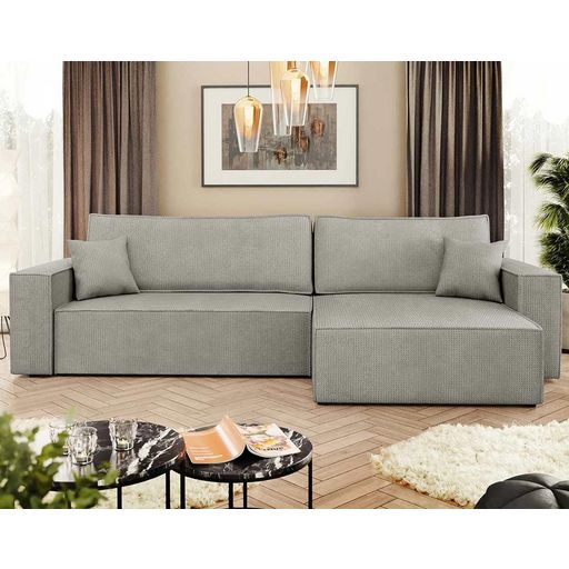 Cezanne - canapé d'angle réversible 5 places convertible avec coffre en tissu texturé