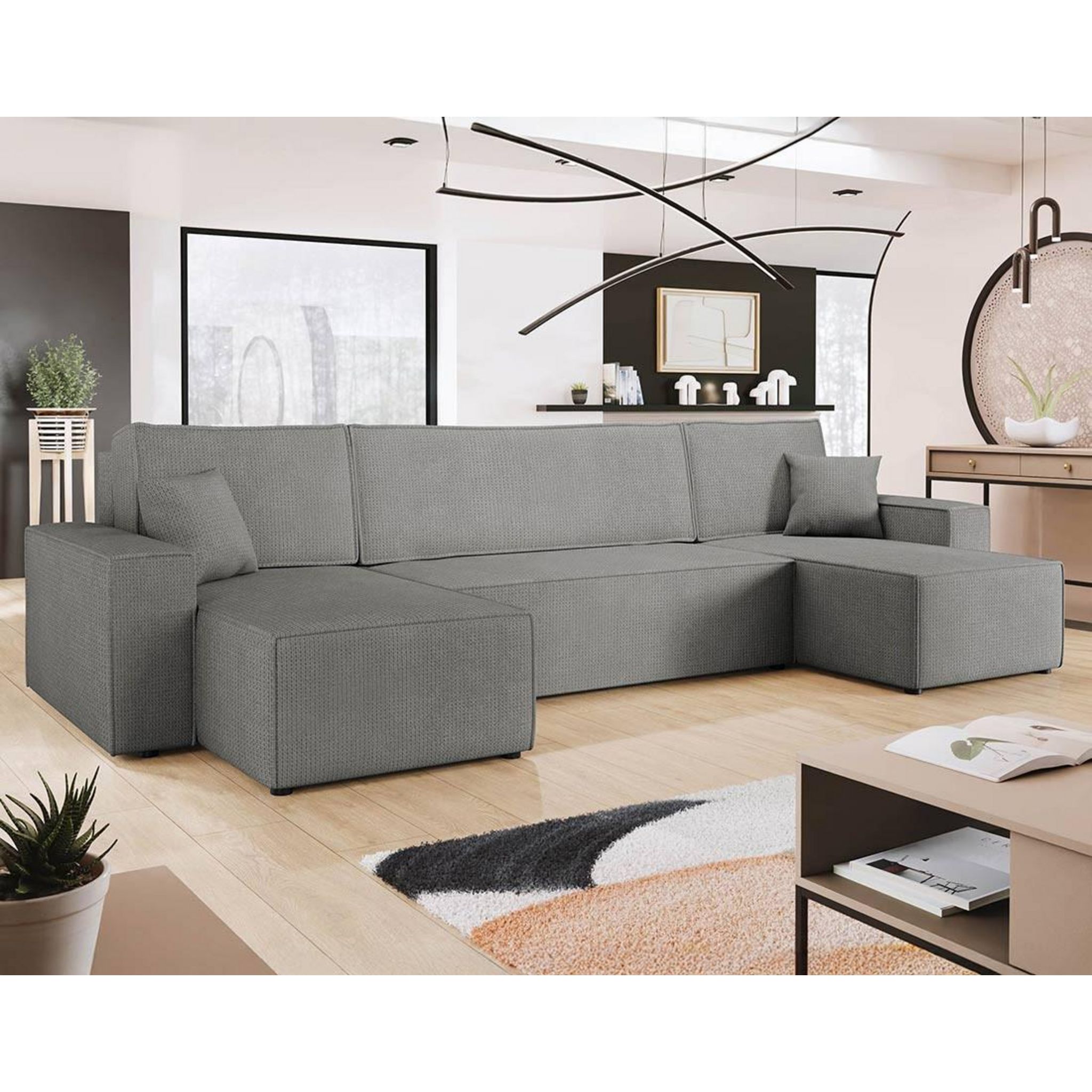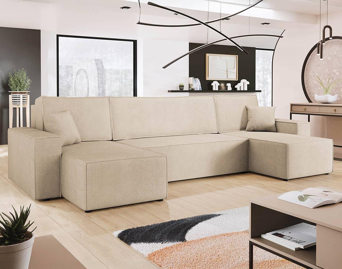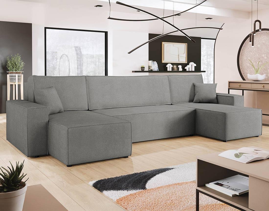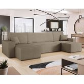 Cezanne - canapé panoramique en u 7 places convertible avec coffre en tissu texturé