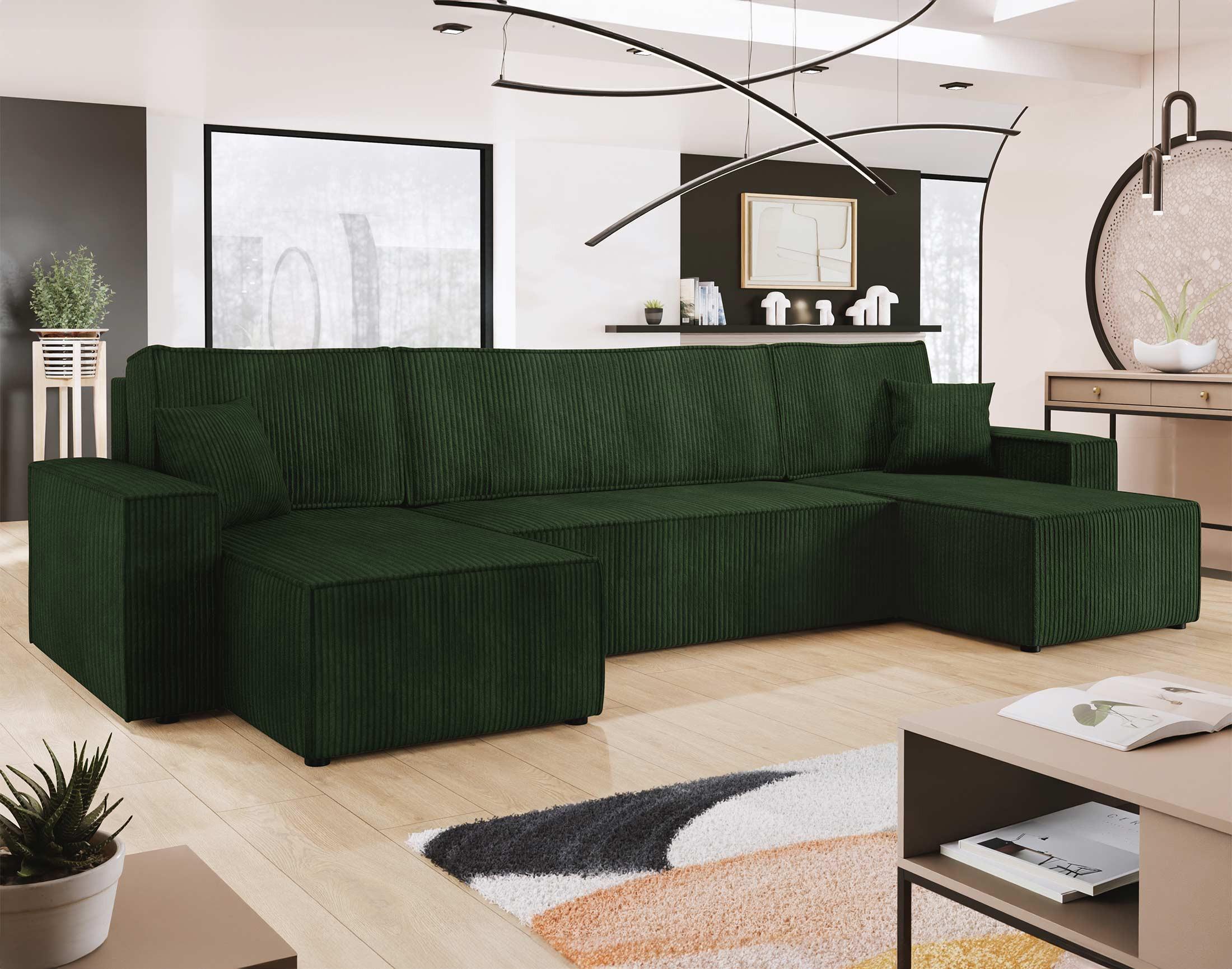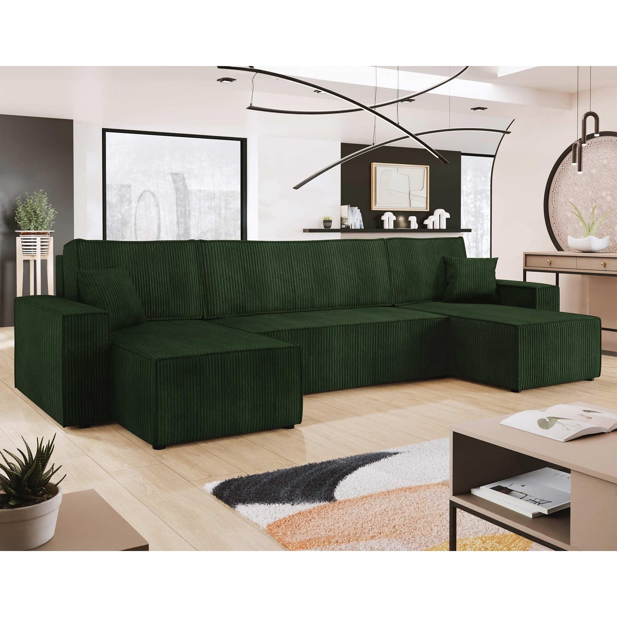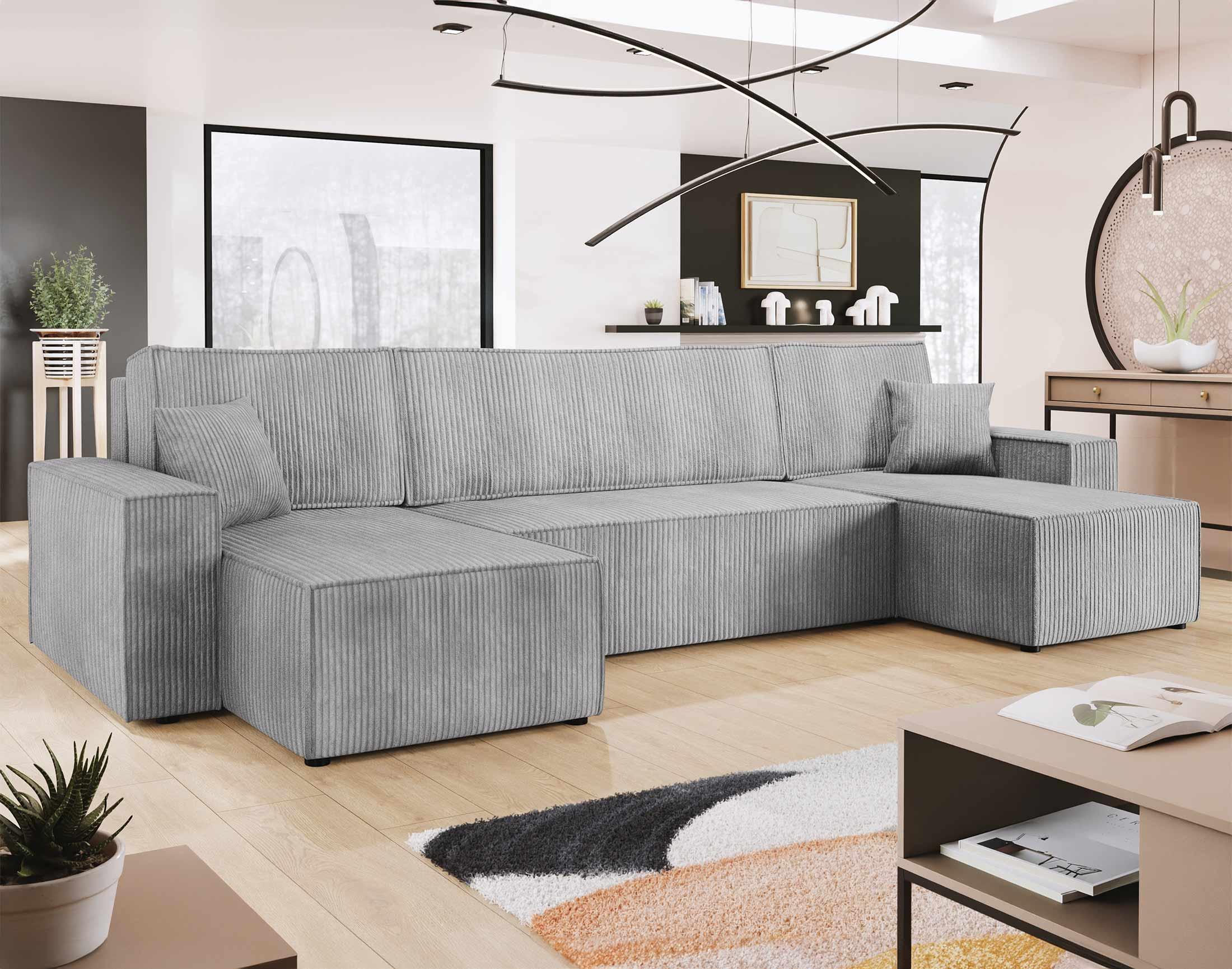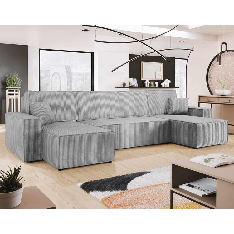 Cezanne - canapé panoramique en u - 7 places - convertible avec coffre - en velours côtelé