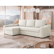 Claudia - canapé d'angle gauche 4 places convertible avec coffre en tissu texturé