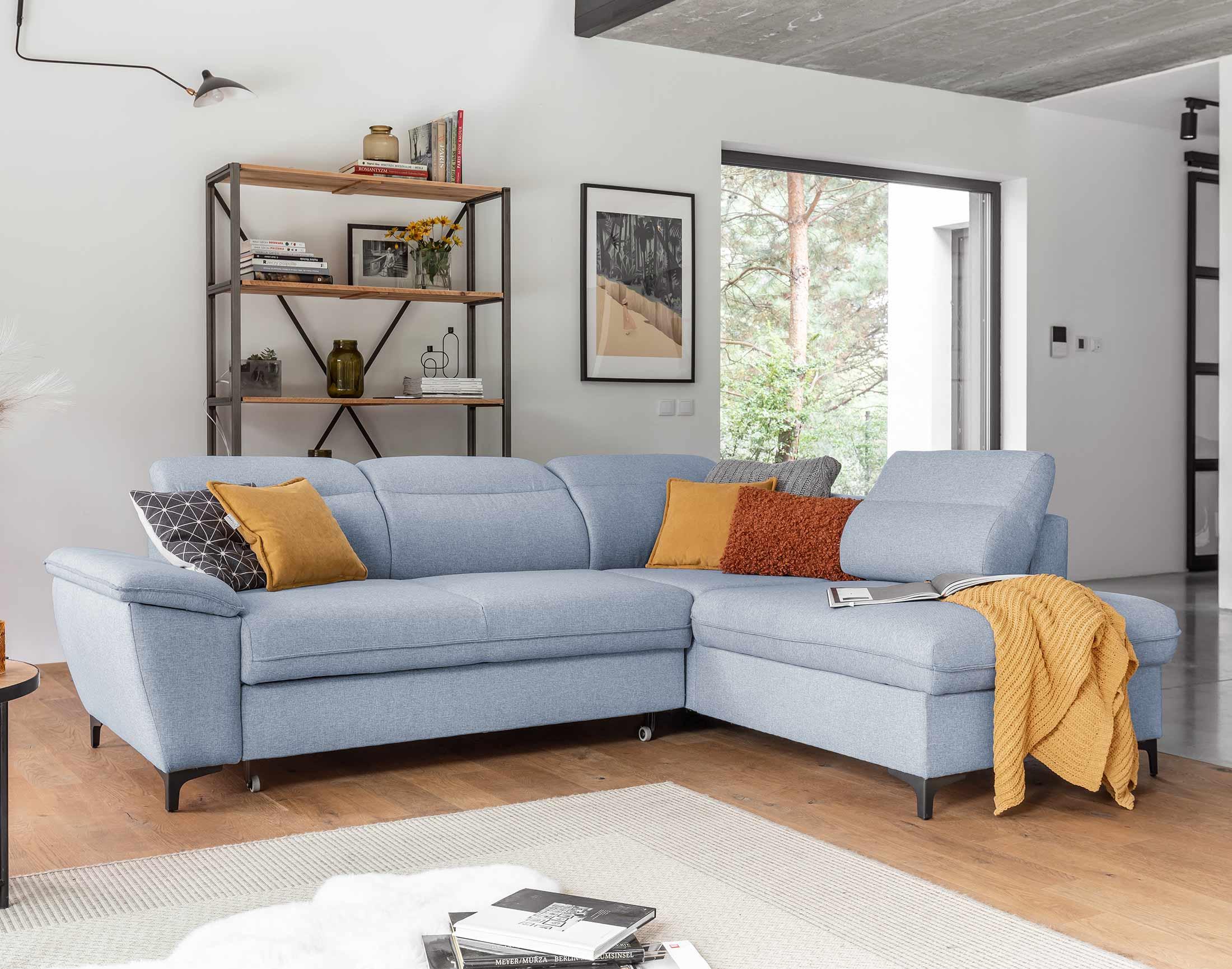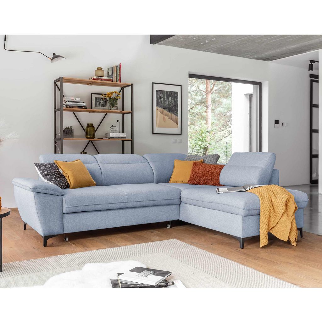 Clever - canapé d'angle droit - 5 places - convertible avec coffre et têtières - en tissu