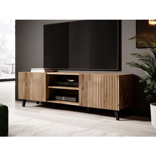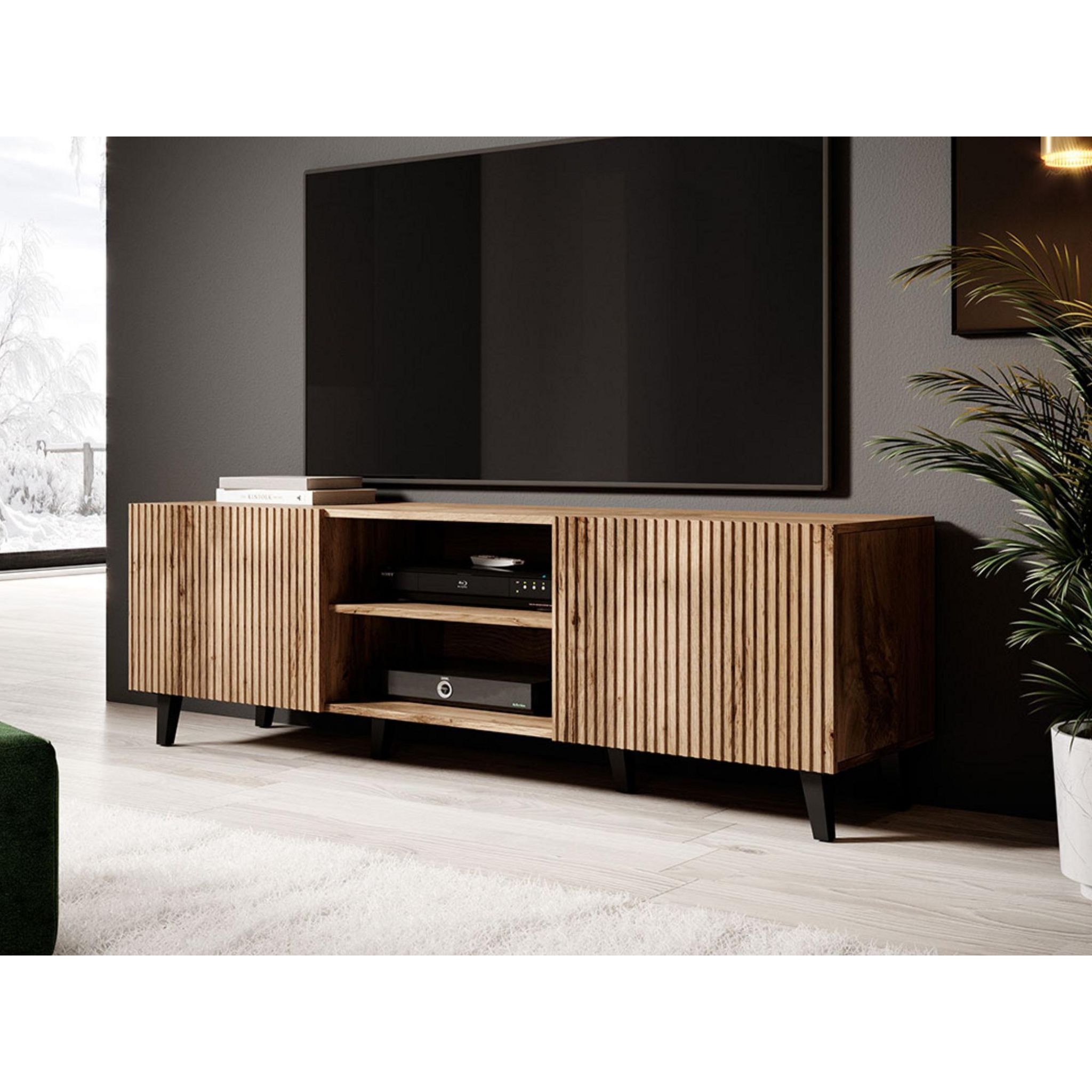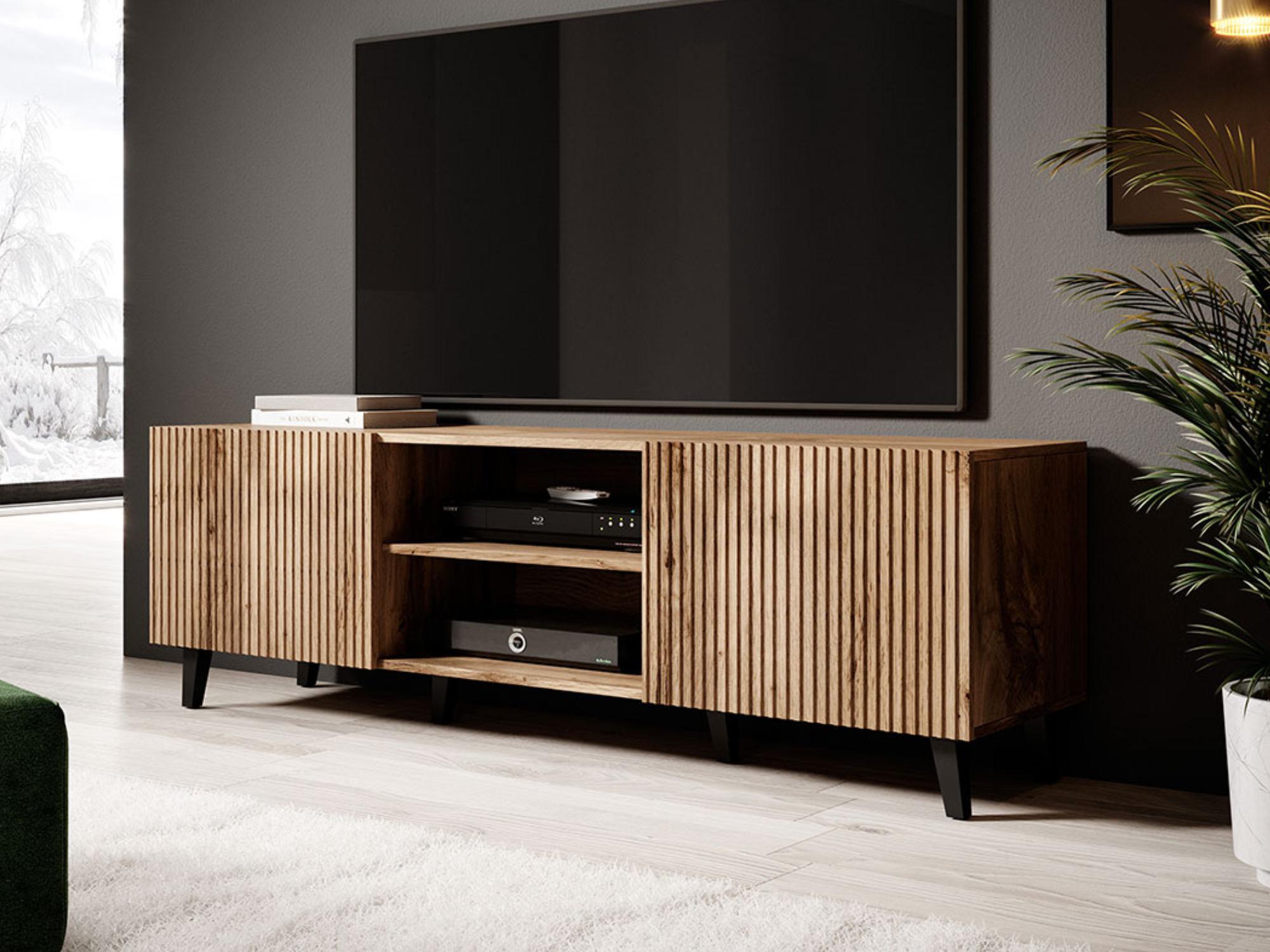Come - meuble tv - effet bois - 2 portes et 2 niches - 150 cm