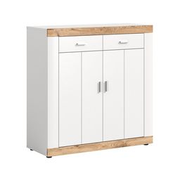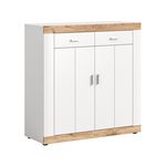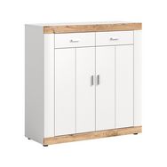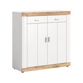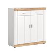 Caractéristiques techniques :Couleur : Bois / BlancType de buffet : HautSystème d'ouverture Push : NonNombre d'étagères : 2Nombre de tiroirs : 2Nombre de portes : 2Produit recyclable : TotalementMatière de la structure : Panneaux de particulesMatière : Panneaux de particulesDétail des matières : Déc