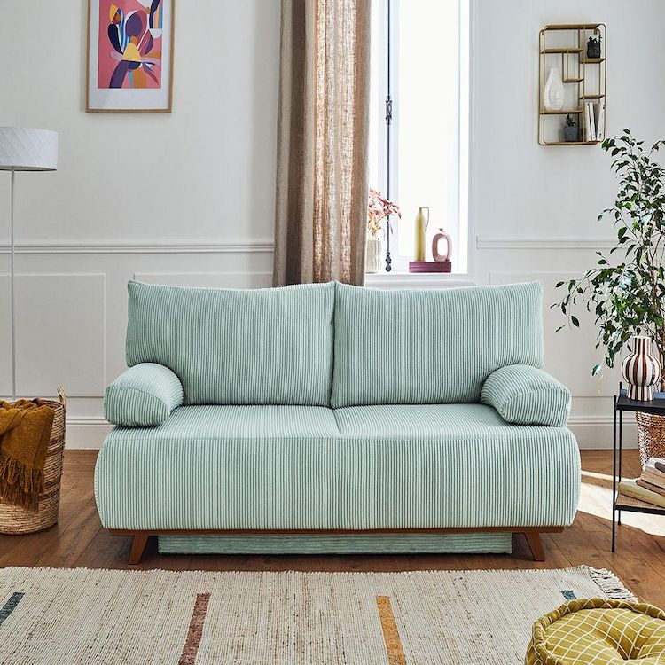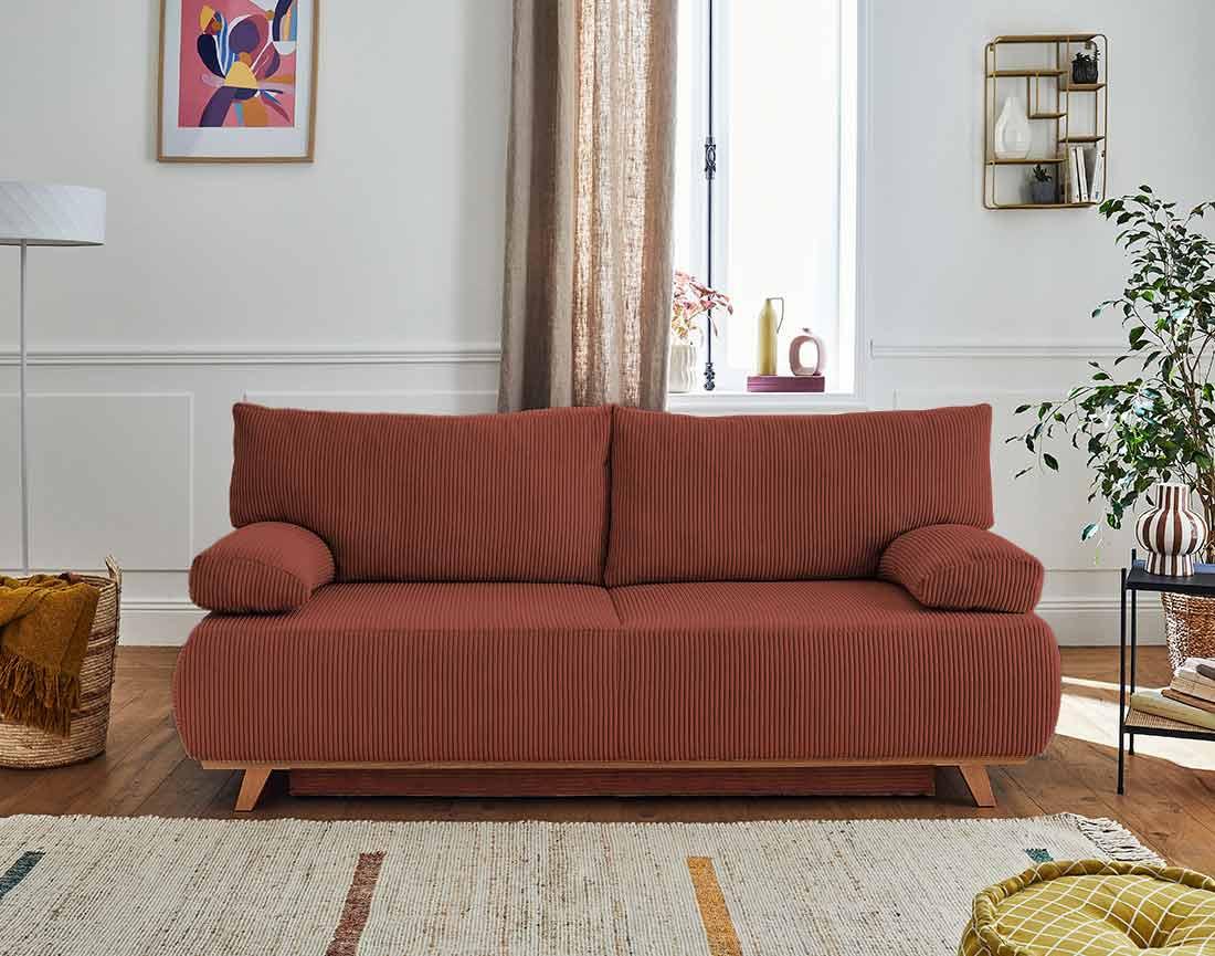 Cristal - canapé 3 places - convertible avec coffre - en velours côtelé