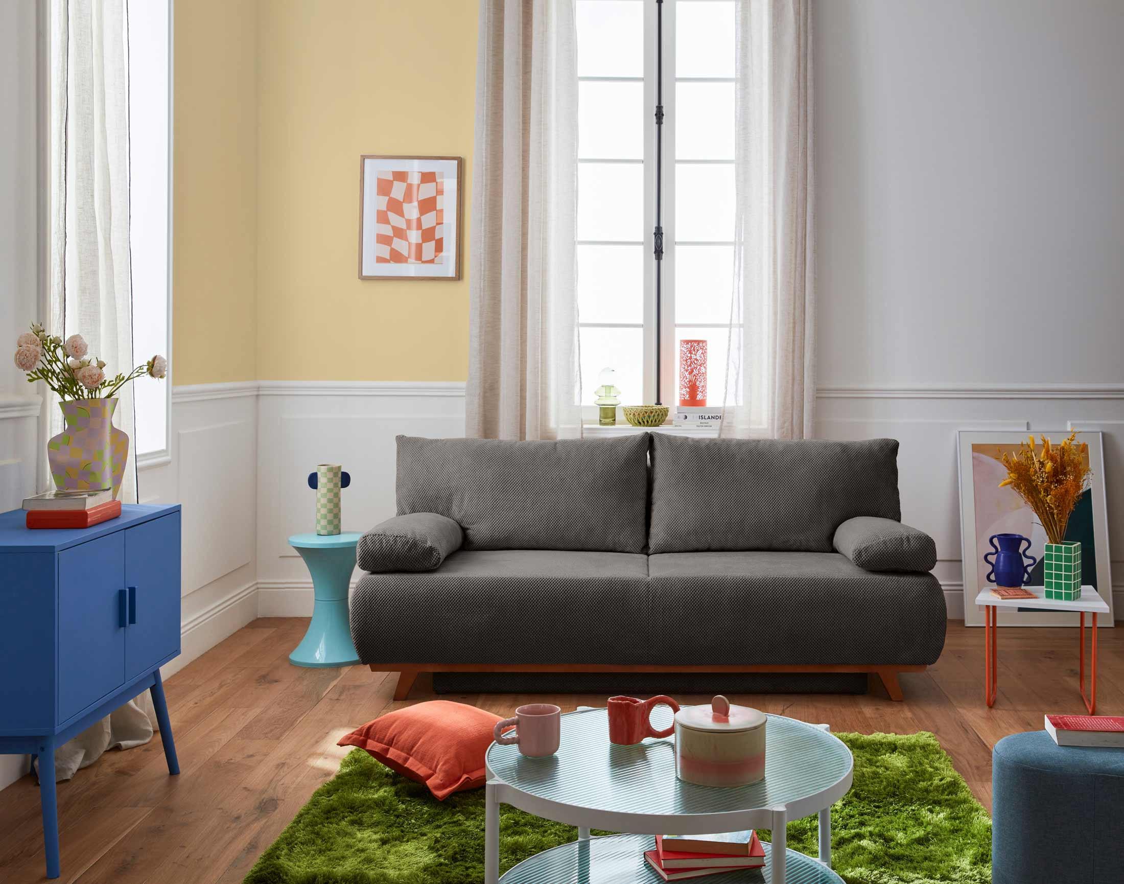 Cristal - canapé 3 places - convertible avec coffre - en velours texturé