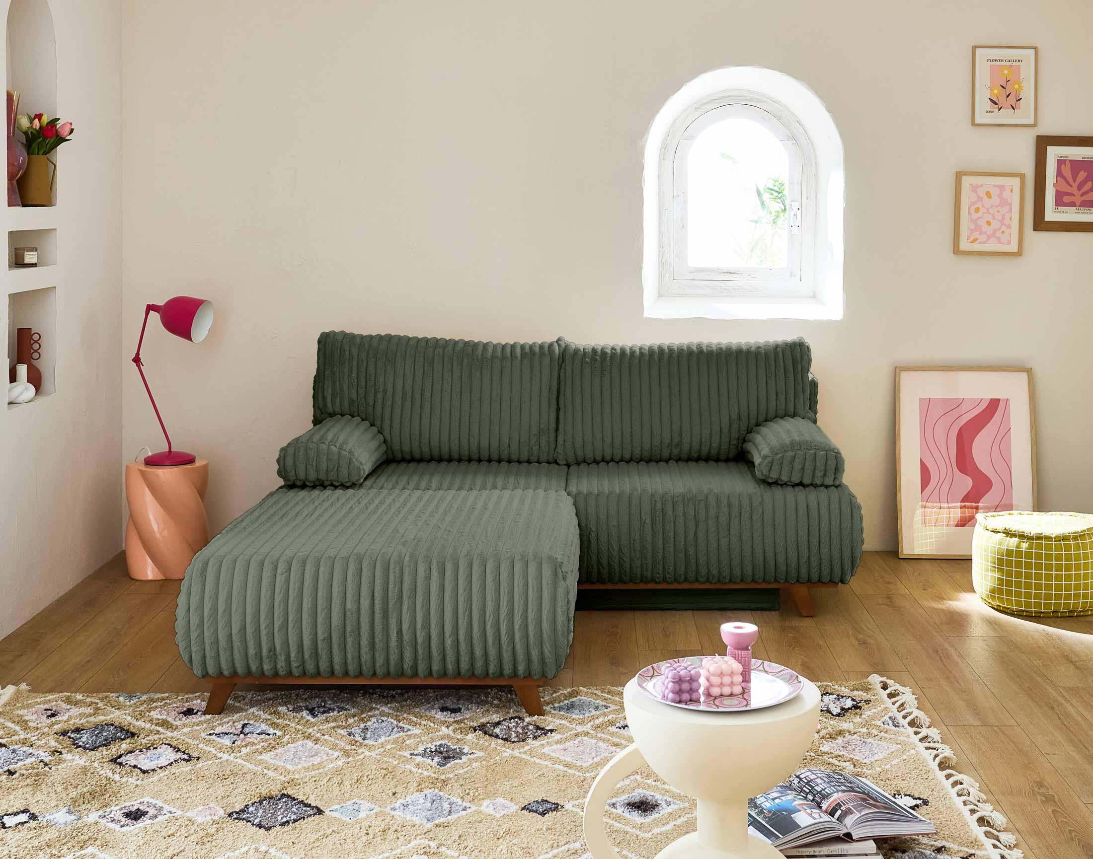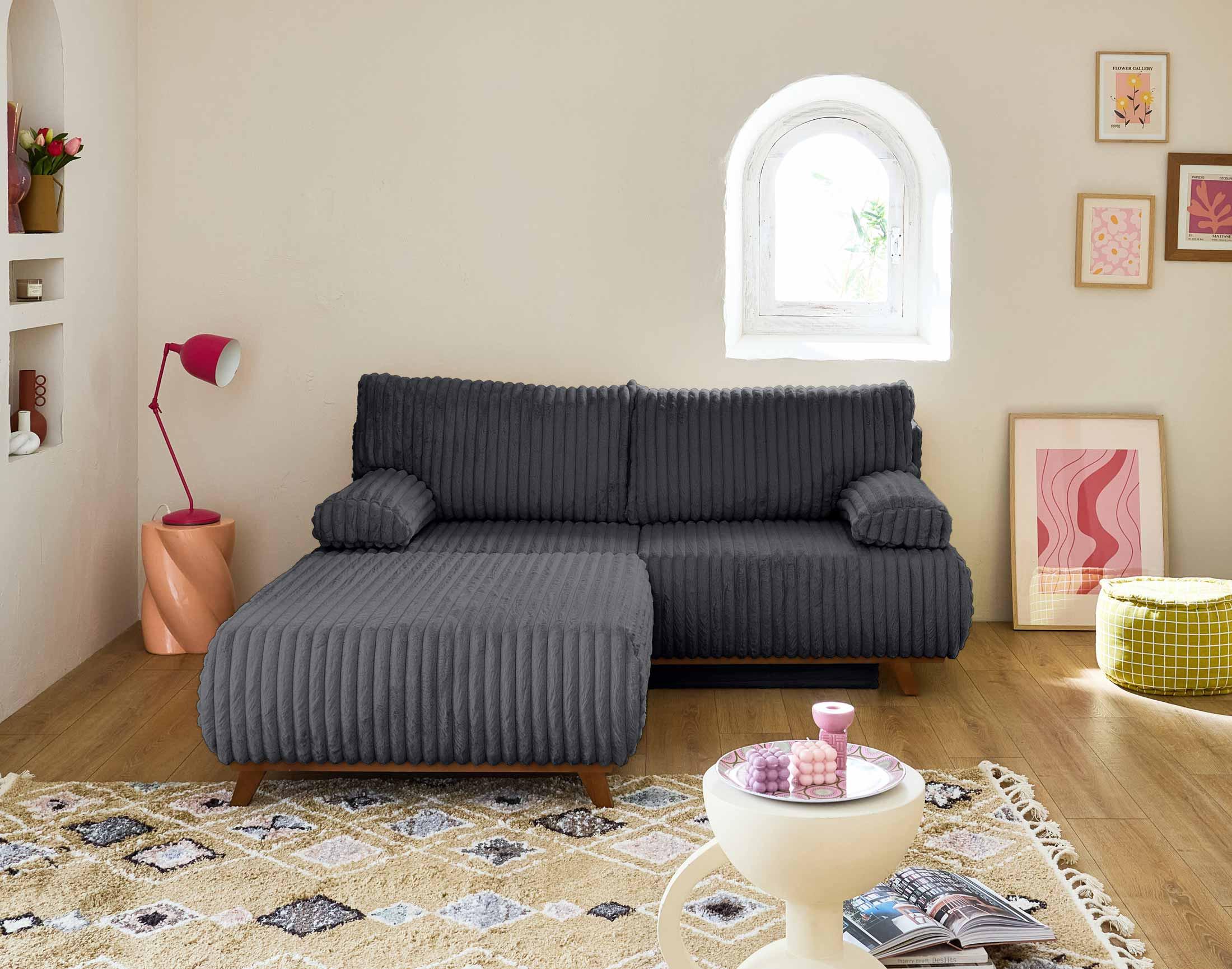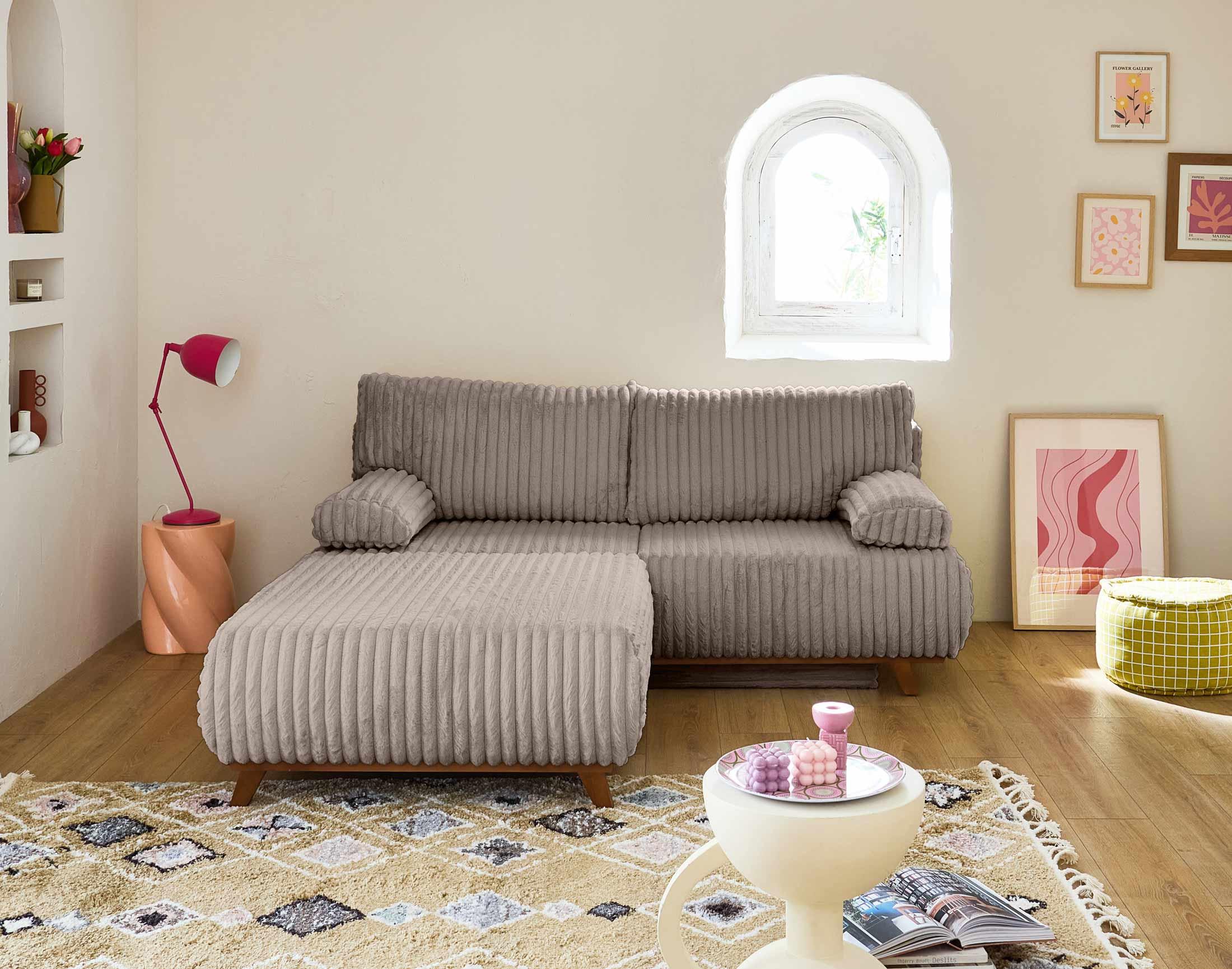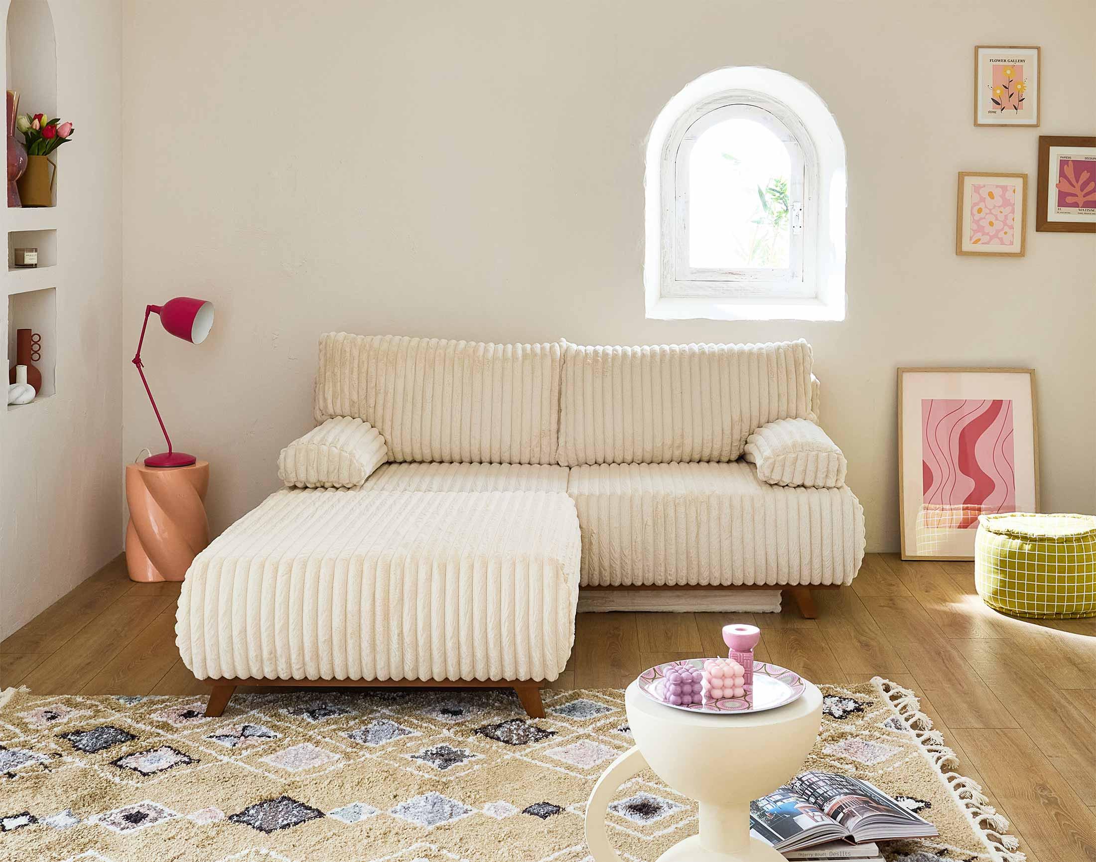 Cristal - canapé 3 places - convertible avec coffre et grand pouf - en fausse fourrure côtelée
