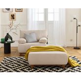 Découvrez le fauteuil Cristal avec pouf qui s'imposera comme pièce principale dans votre salon, votre bureau ou encore sur votre mezzanine. Ses lignes originales dotées d'épais coussins de dossier et de coussins d'accoudoirs, vous offre un confort optimal pour d'agréables moments de détente. Quant à son piètement en bois et son revêtement en velours côtelé très tendance et doux au toucher, ils apporteront de la chaleur à votre intérieur. Vous apprécierez son pouf de 95 cm de large qui a la particularité d'être incurvé afin de s'accoler sur le devant du fauteuil pour en faire un convertible plus grand.