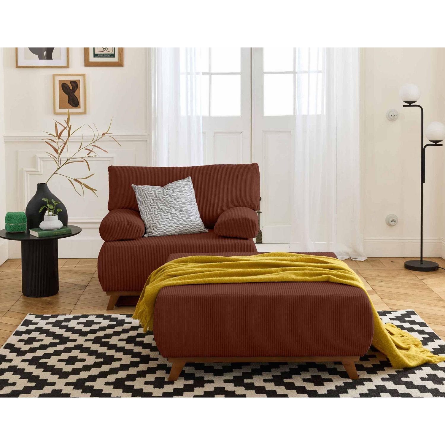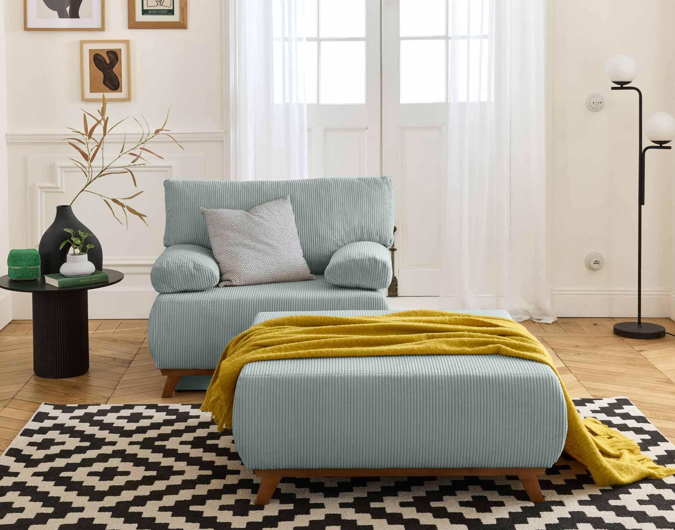 Cristal - fauteuil - convertible avec coffre et grand pouf - en velours côtelé