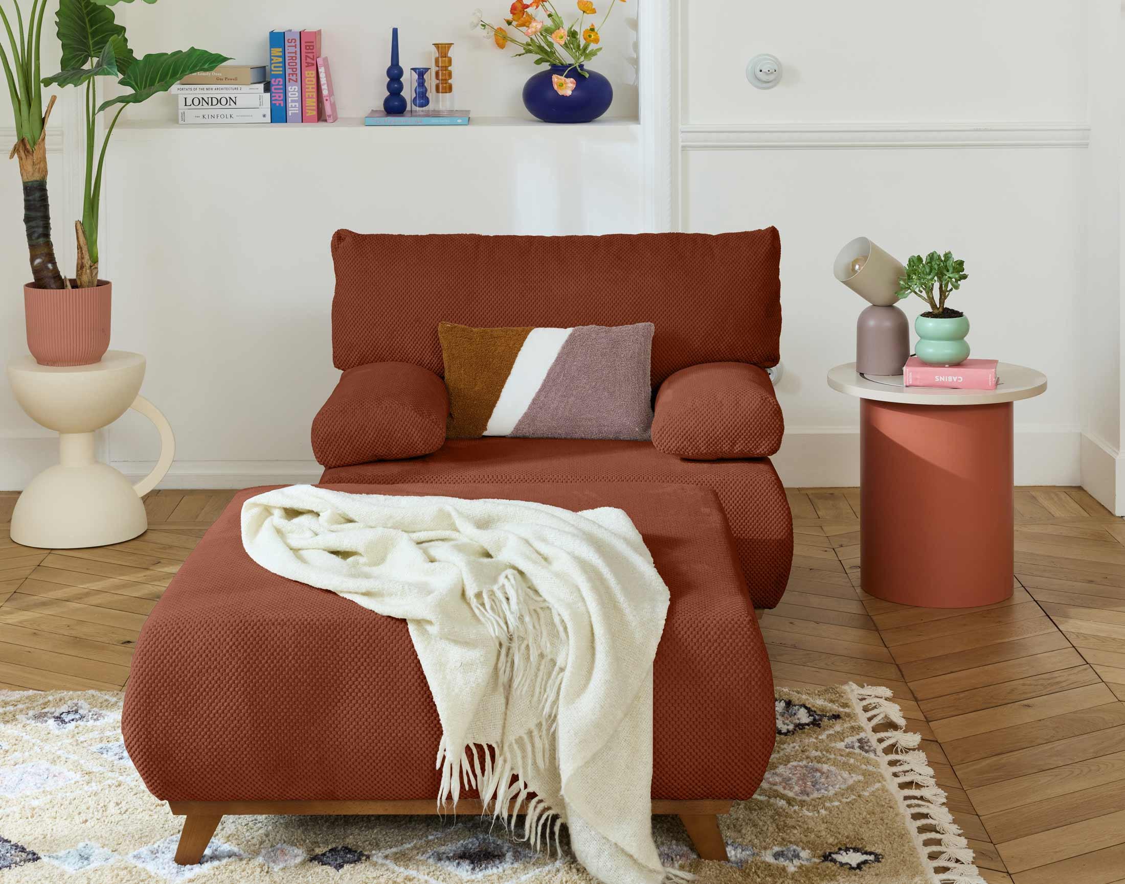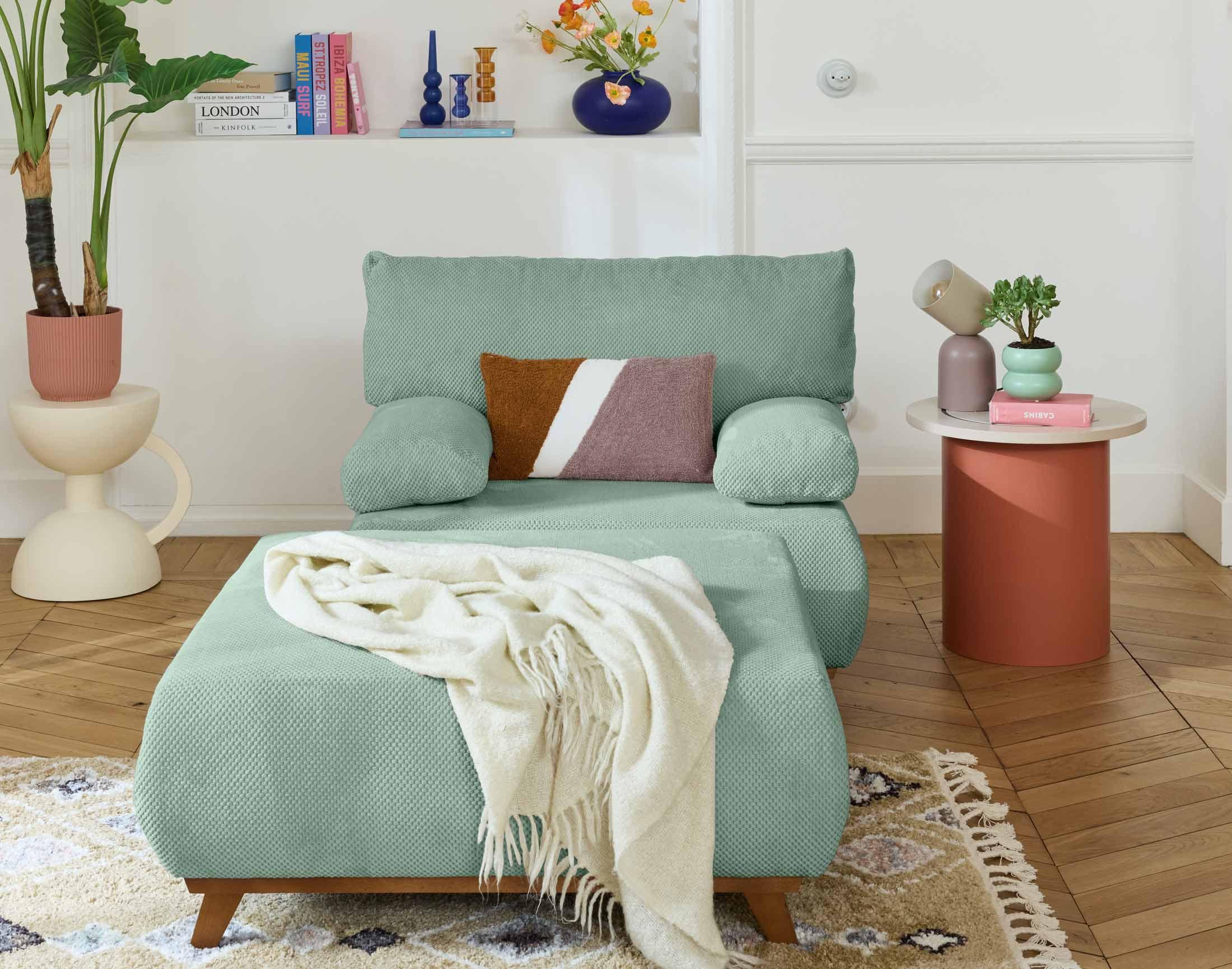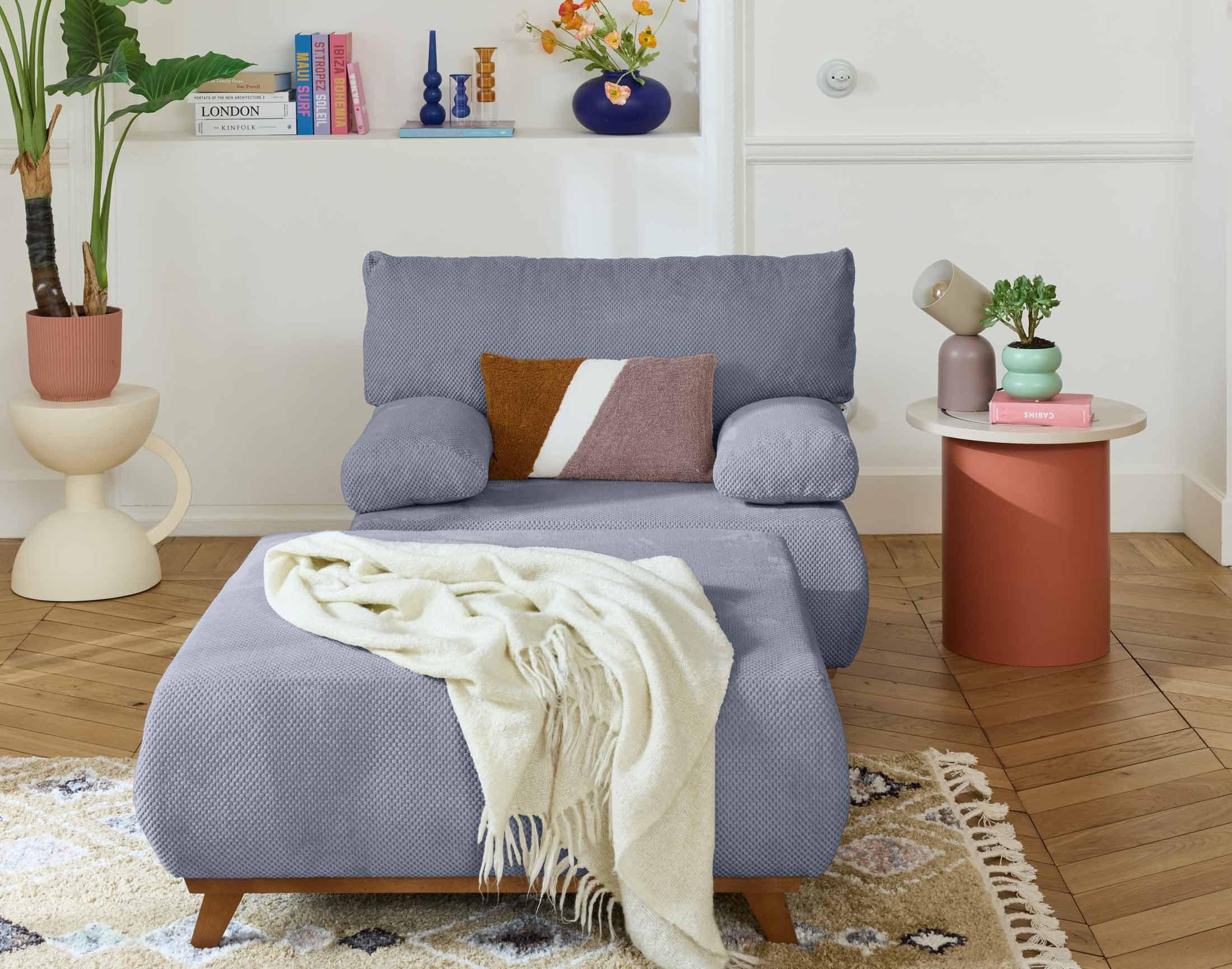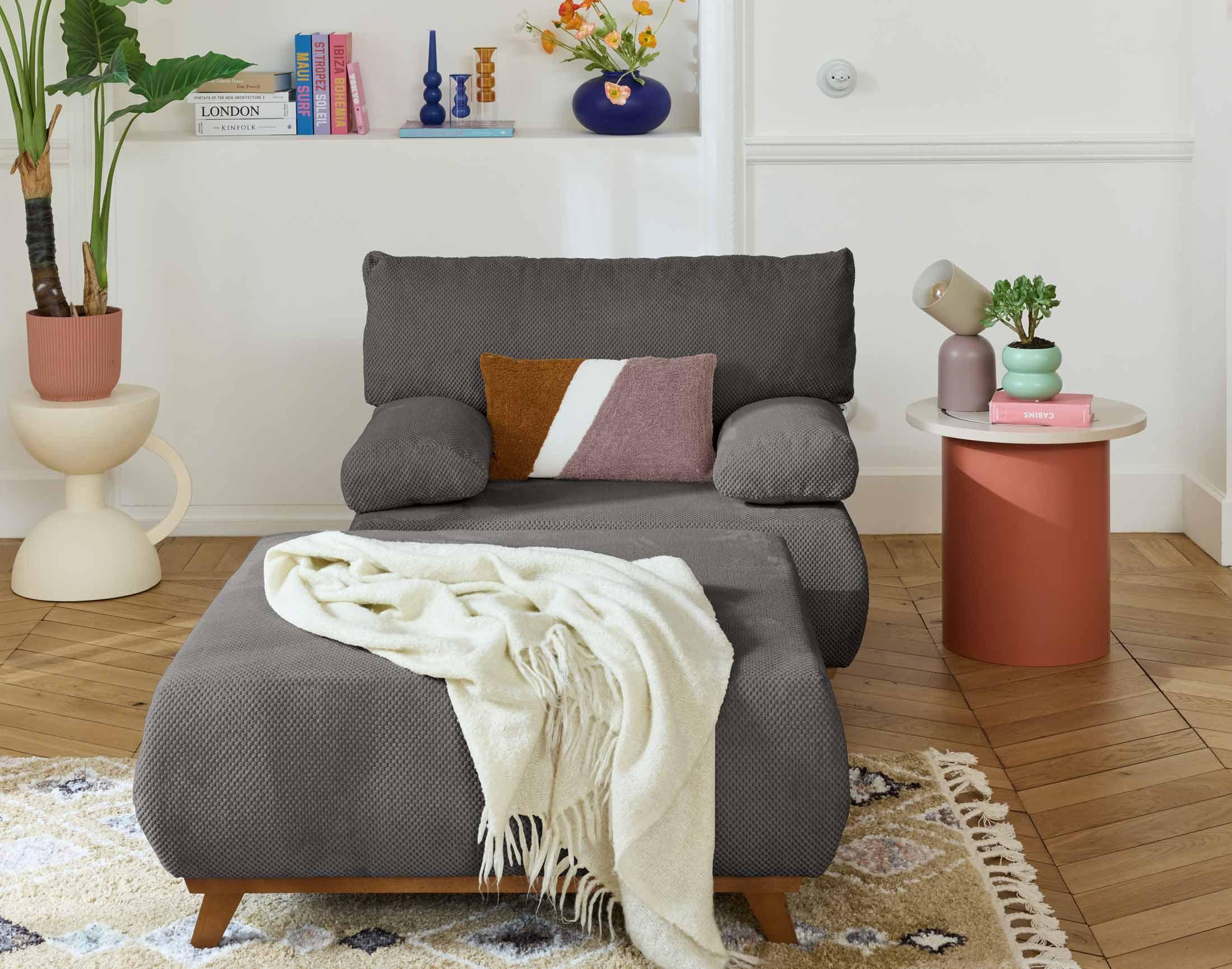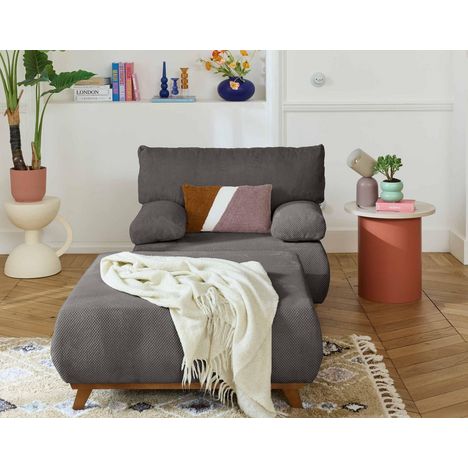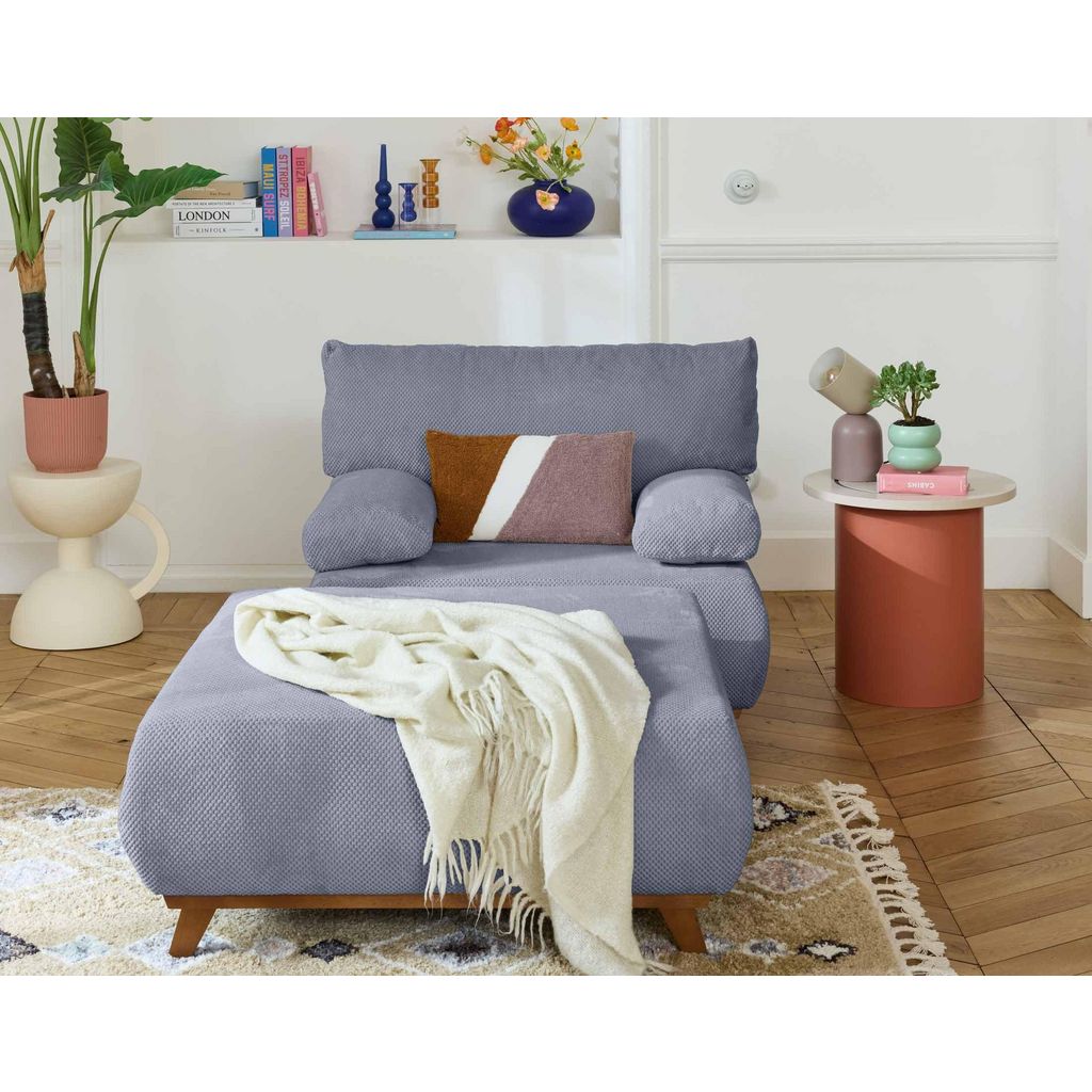 Cristal - fauteuil - convertible avec coffre et grand pouf - en velours texturé