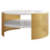 Cruz - table basse ronde - effet marbre blanc et doré - 1 niche - 75 cm