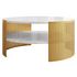 - Détail des matières : Matières principales : Panneaux de particules – Matière de la structure : Acier/Métal – Finition : Satinée – Pieds en bois – Résistant à l'humidité et aux rayures