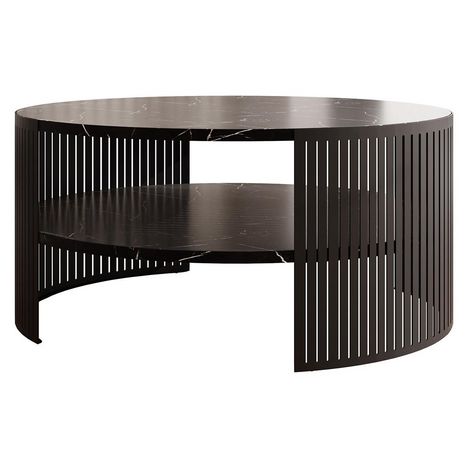 Cruz - table basse ronde - effet marbre noir - 1 niche - 75 cm