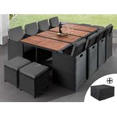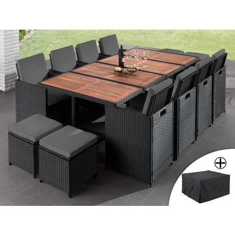 Cuba - salon de jardin encastrable 12 places - en résine tressée - noir avec coussins gris + housse de protection