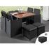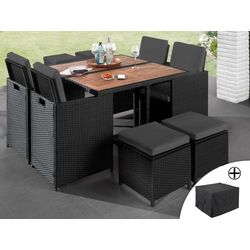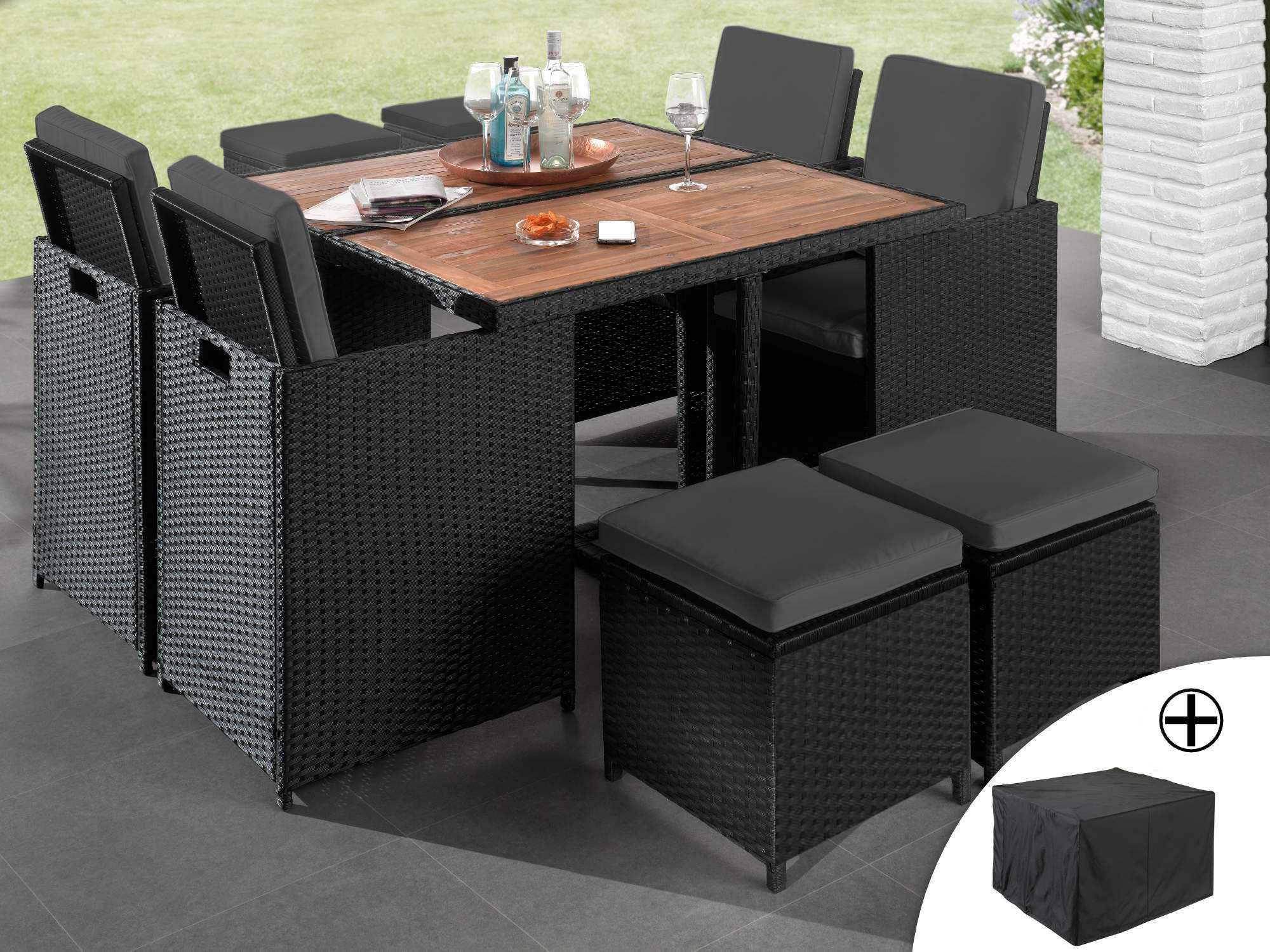 Cuba - salon de jardin encastrable 8 places - en résine tressée - noir avec coussins gris + housse de protection