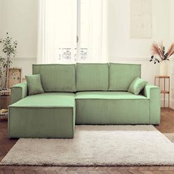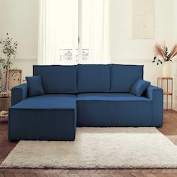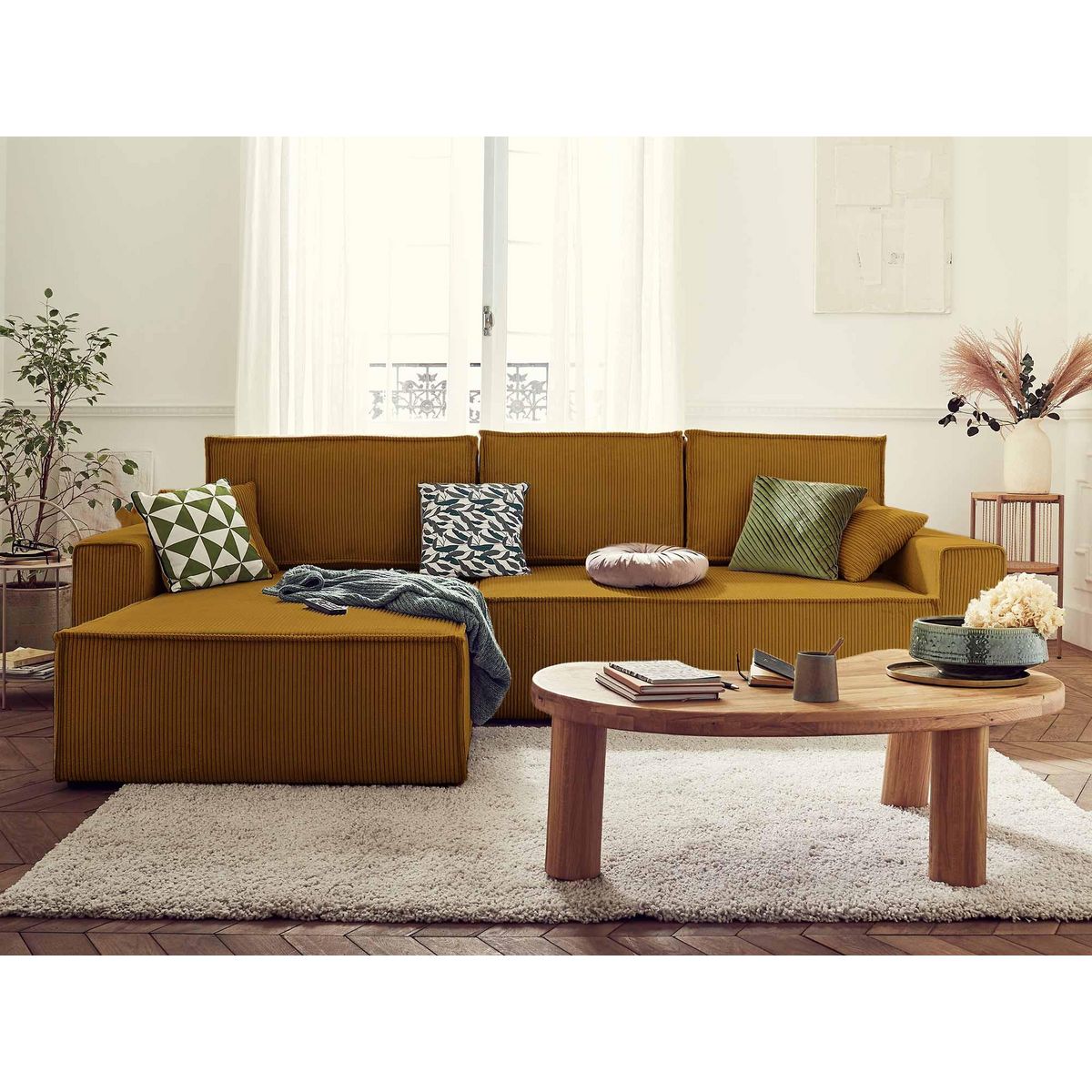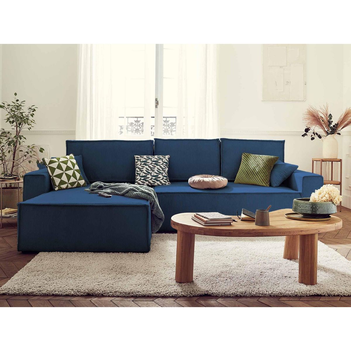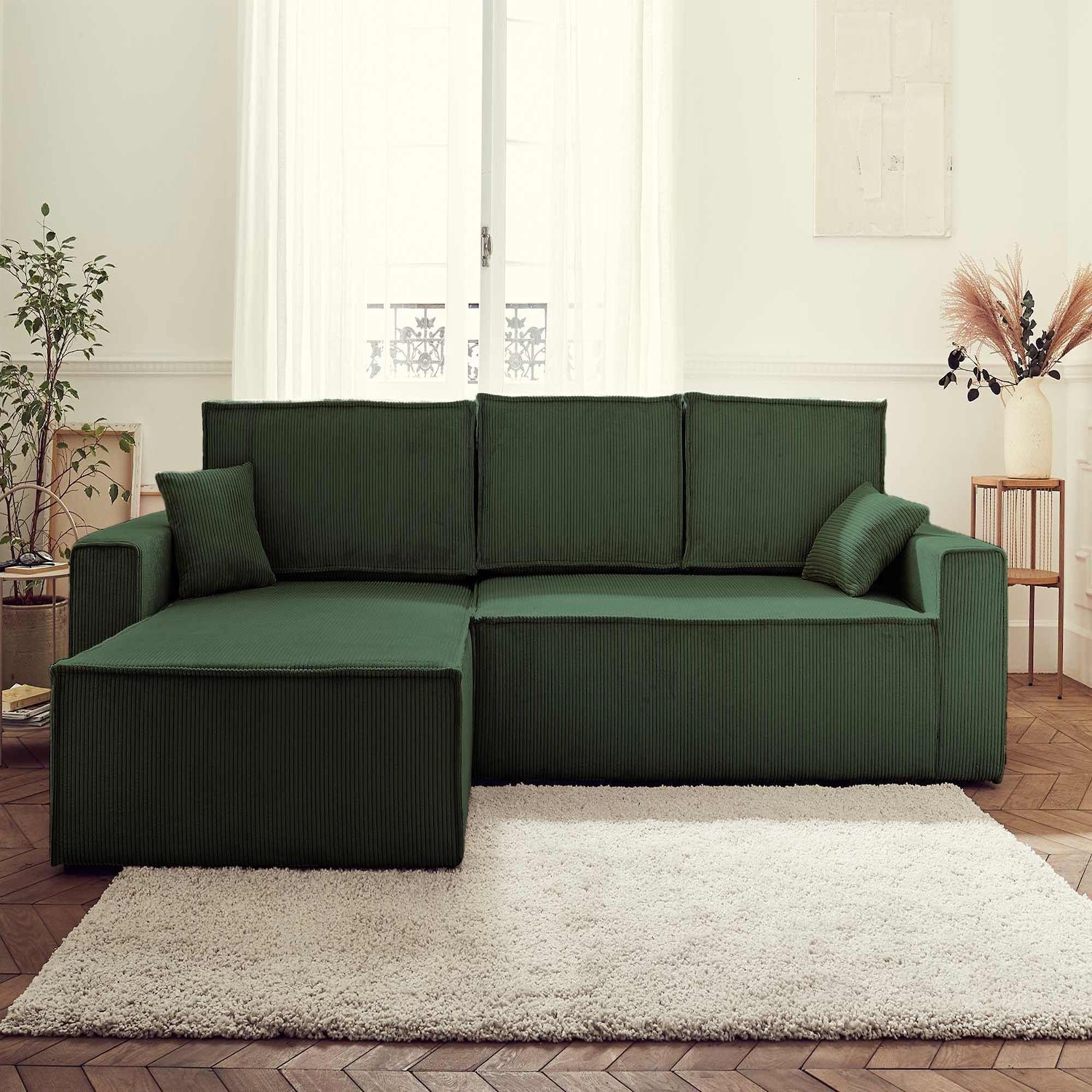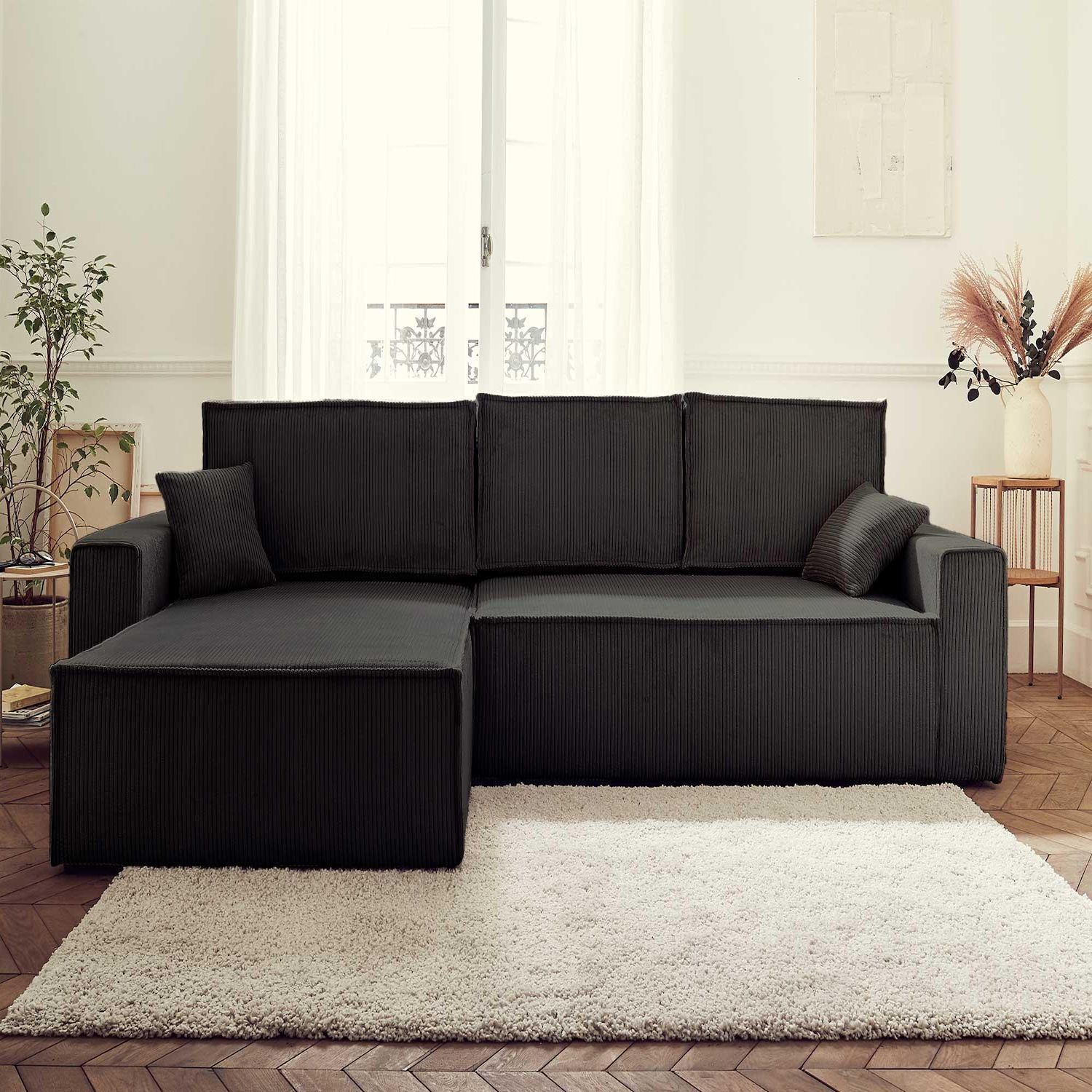 Dellia - canapé d'angle réversible convertible - avec coffre - en velours côtelé - 4 places