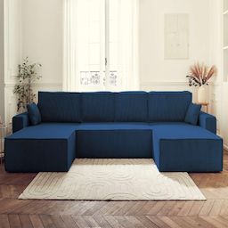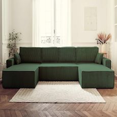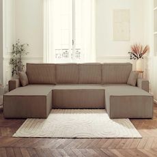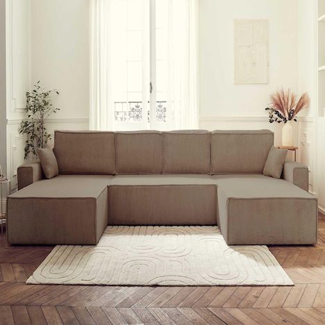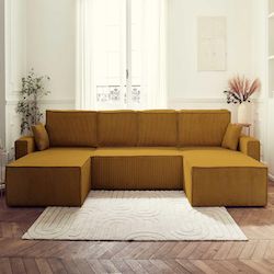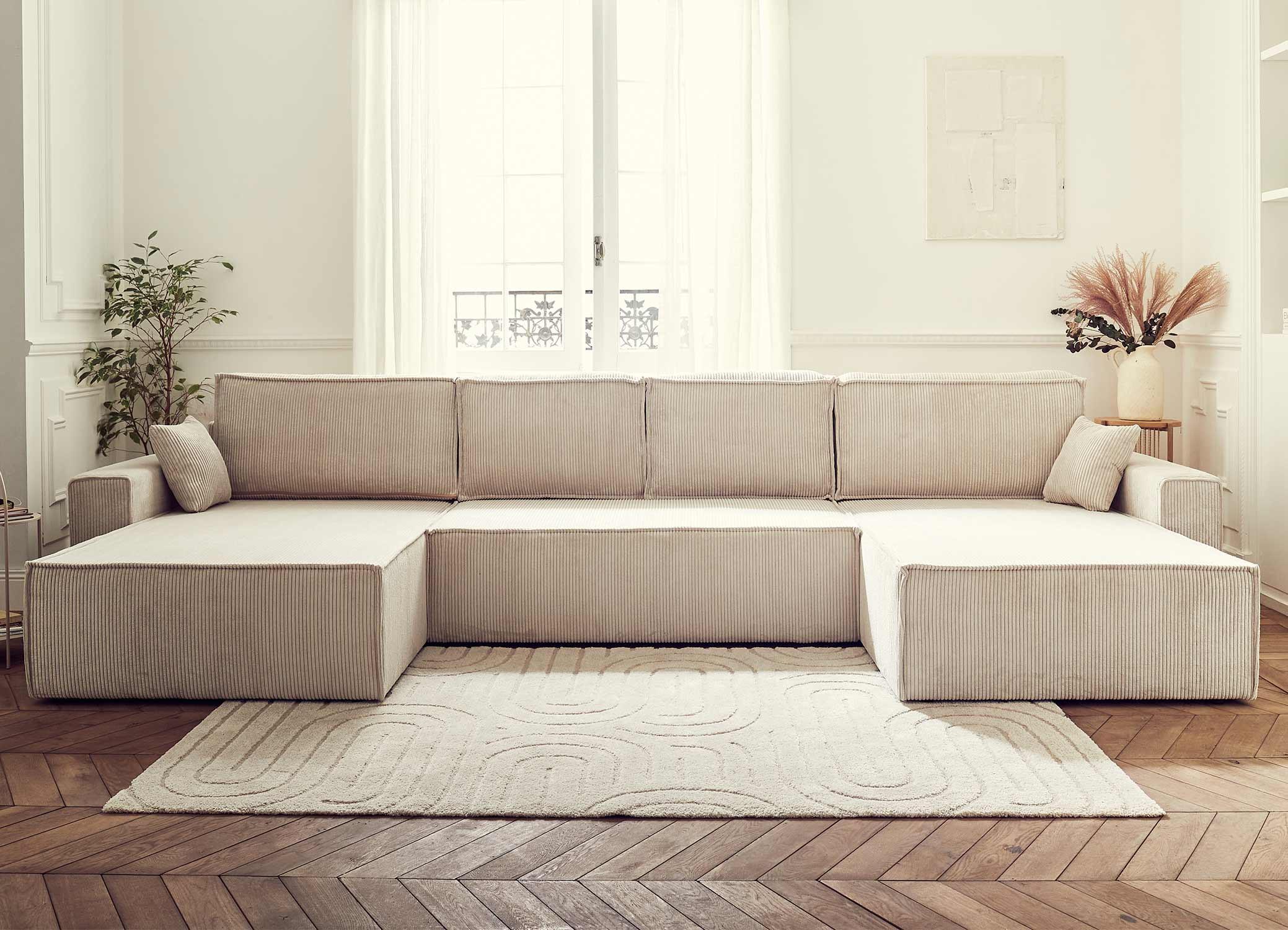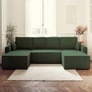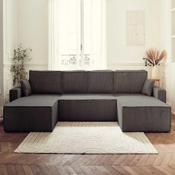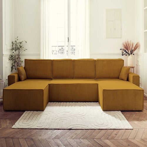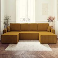 Laissez-vous envouter par le design du canapé panoramique 7 places Dellia vous offrant de généreuses dimensions pour un confort ultime. Grâce à ses lignes droites et épurées, et à la douceur de son revêtement en velours côtelé, le canapé Dellia deviendra la pièce maitresse de votre pièce à vivre tout en vous garantissant des instants de détente très agréables.