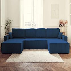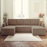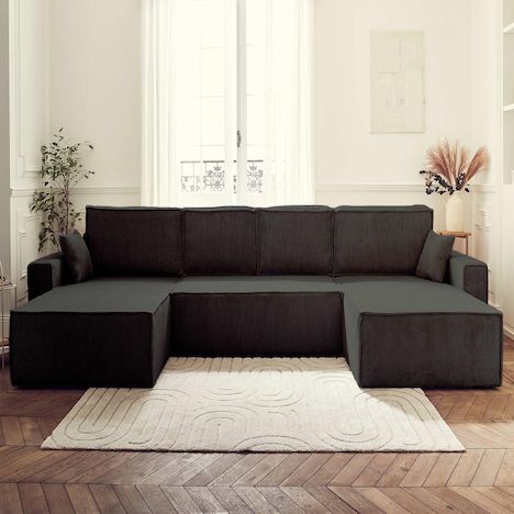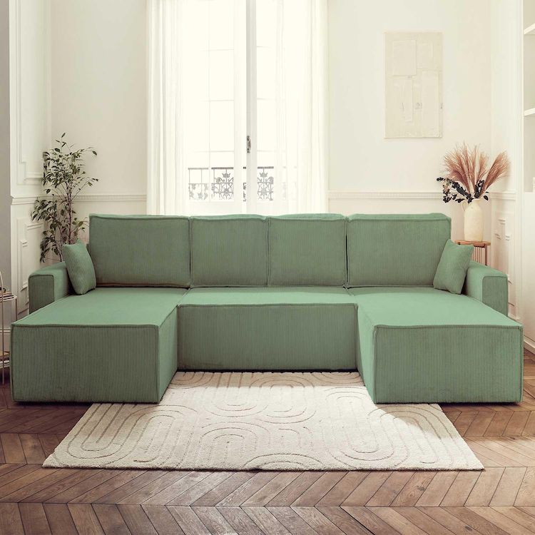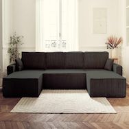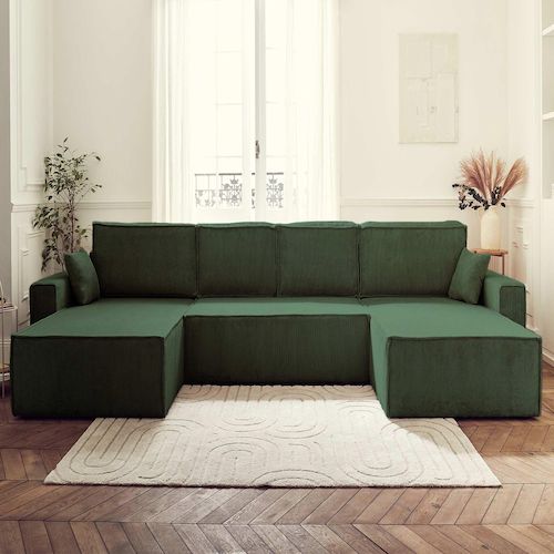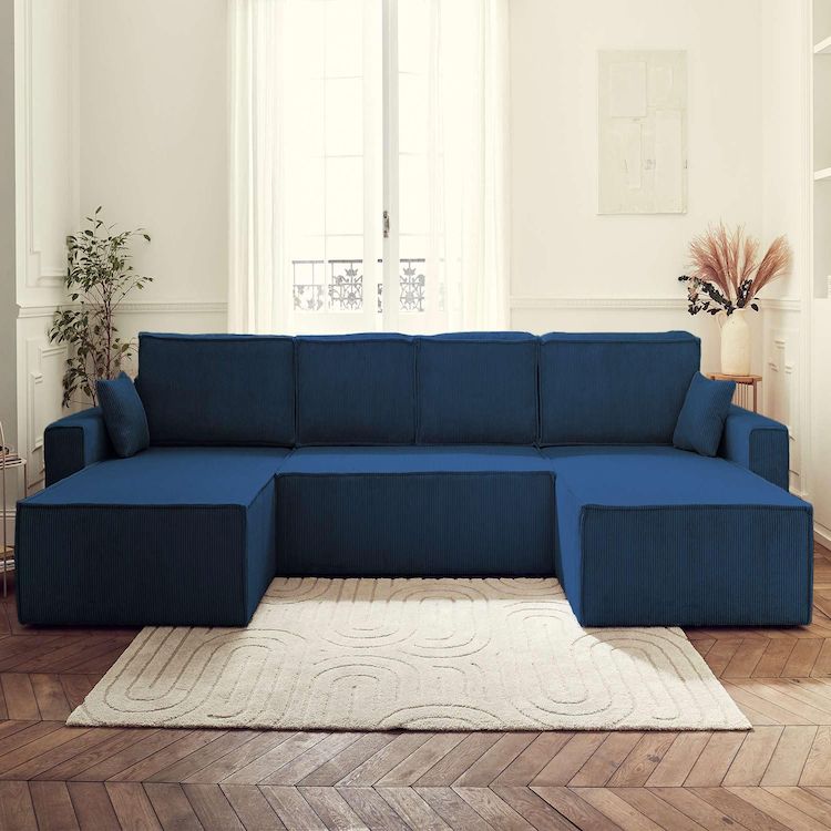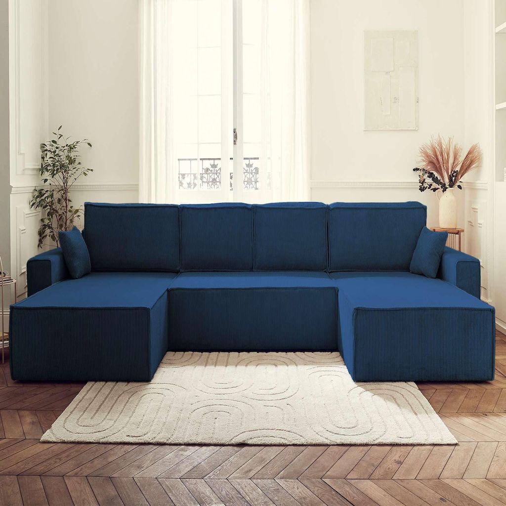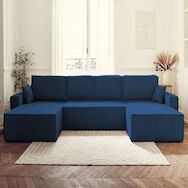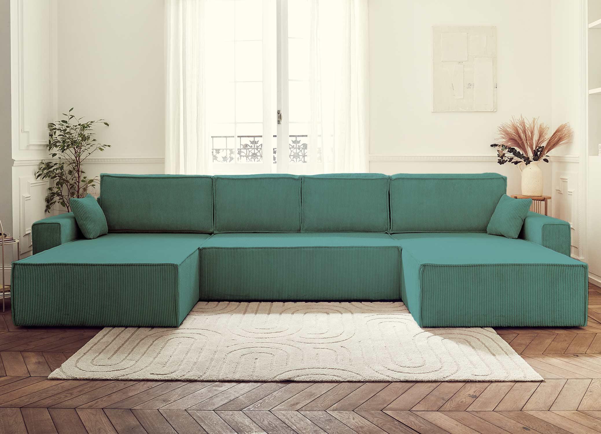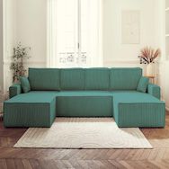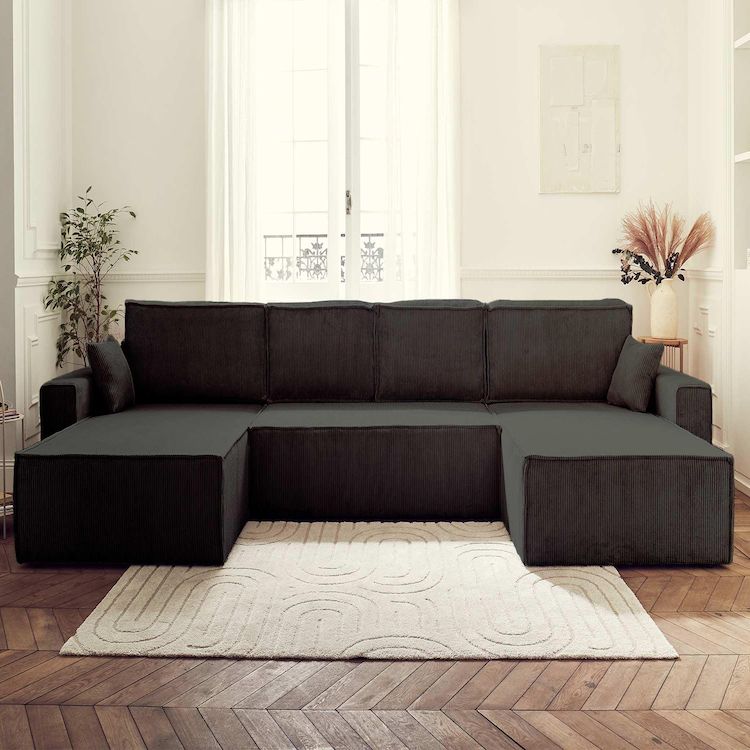 Dellia - canapé panoramique en u - 7 places - convertible - avec coffre - en velours côtelé