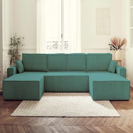 Ce canapé est disponible en coloris beige, bleu ardoise, gris anthracite, gris foncé, jaune, taupe et vert.