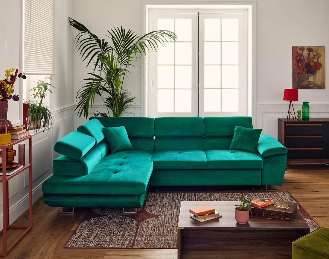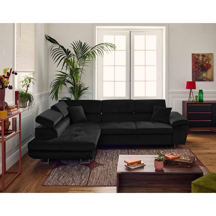 Dimas - canapé d'angle gauche 5 places - convertible avec coffre et têtières réglables - en velours
