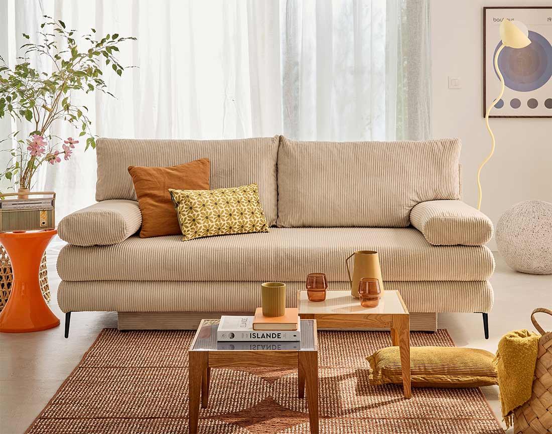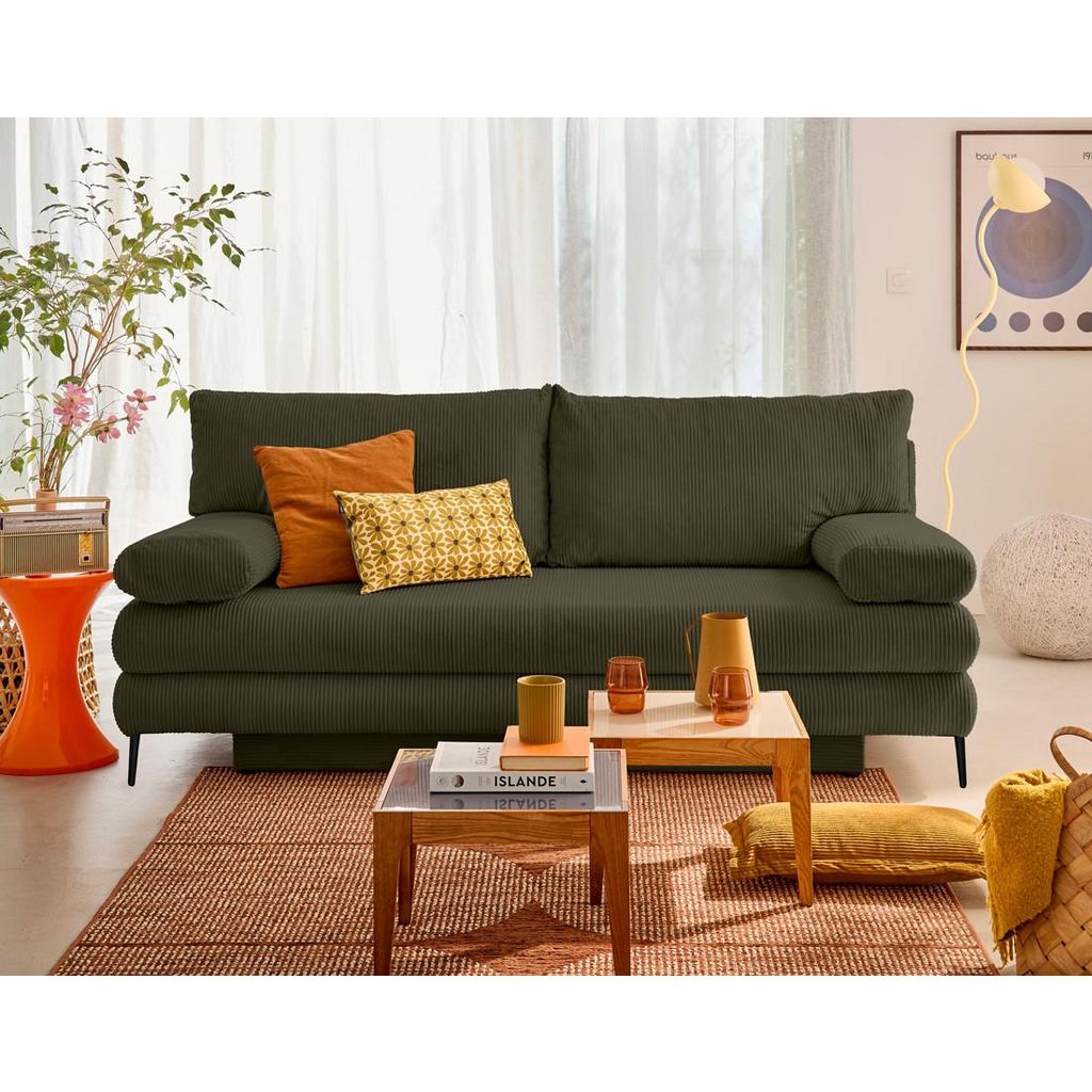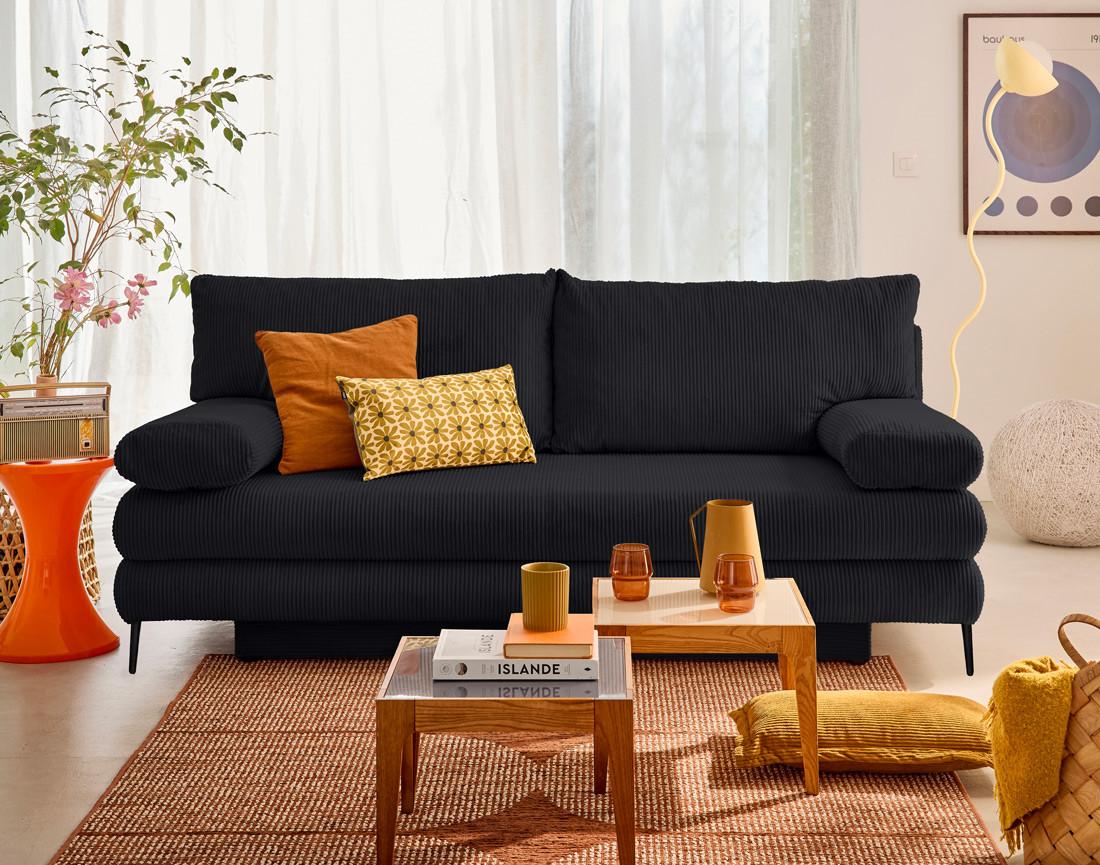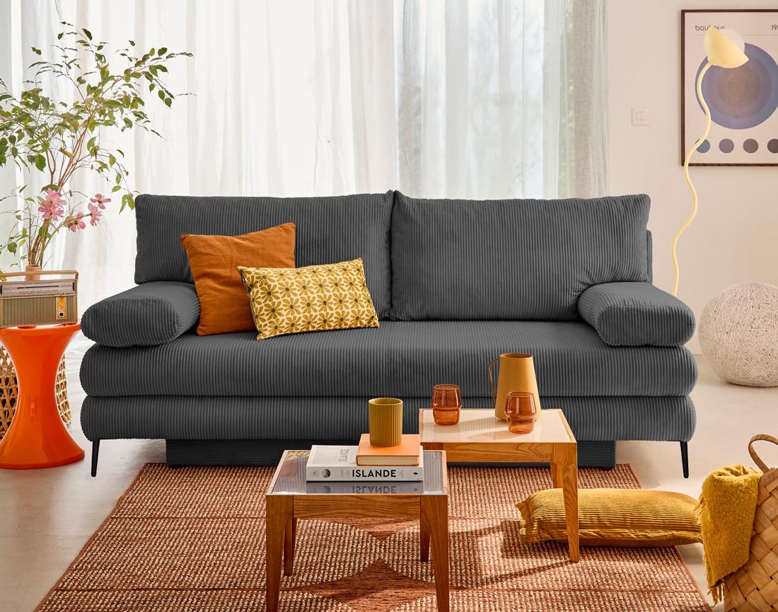 Elton - canapé 3 places convertible avec coffre en velours côtelé