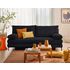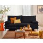 - Détail des matières : Assise : Mouse polyuréthane 30kg/m3 – Dossier : Flocons de mousse – Ressorts ondulés – Structure en bois aggloméré et panneaux de particules – Revêtement en velours côtelé – Pieds en métal noir