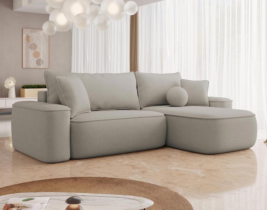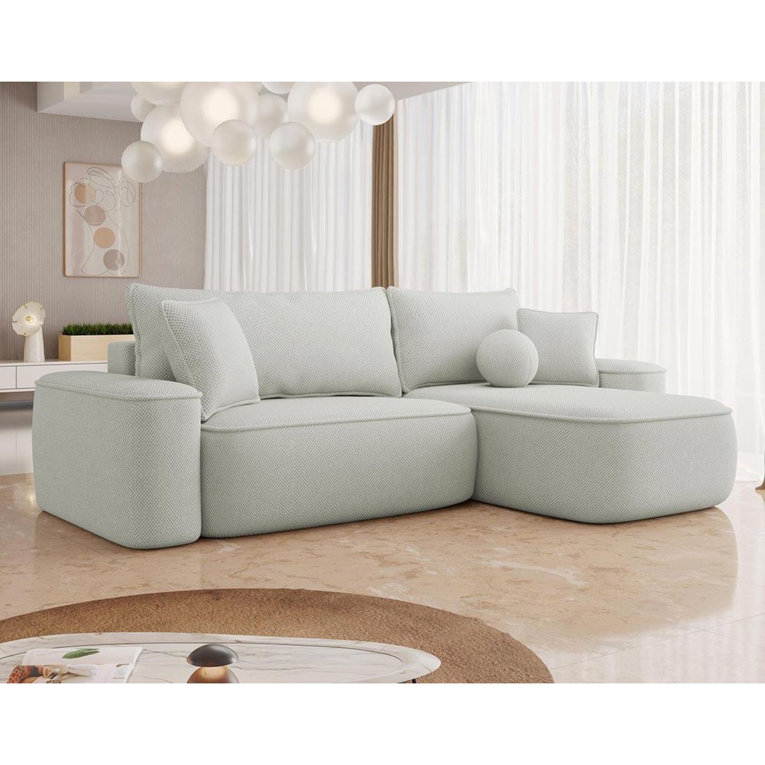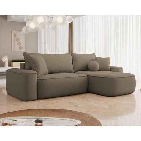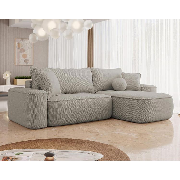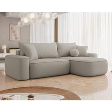 Apportez du style et de la flexibilité à votre salon avec le canapé d'angle réversible Enma. Son allure raffinée se distingue par une méridienne arrondie et des coutures marquées qui soulignent son design moderne. Son tissu texturé doux au toucher ajoute une touche chaleureuse et tendance, s'intégrant parfaitement dans tous les intérieurs.