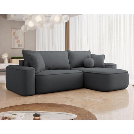 Enma - canapé d'angle réversible 4 places convertible avec coffre en tissu texturé