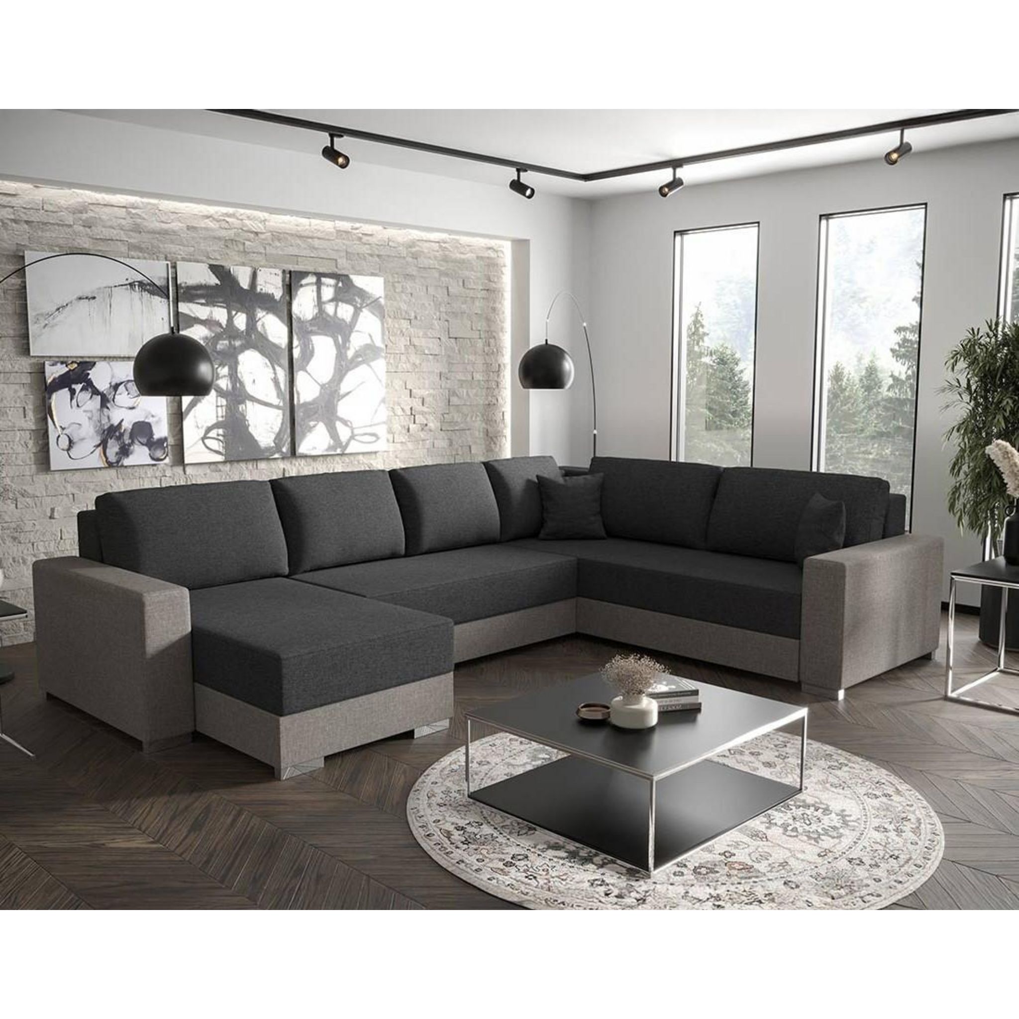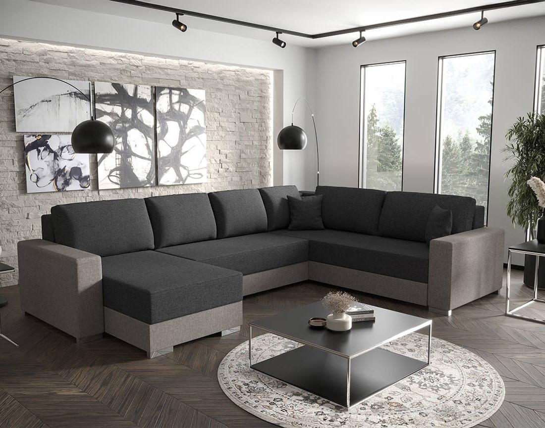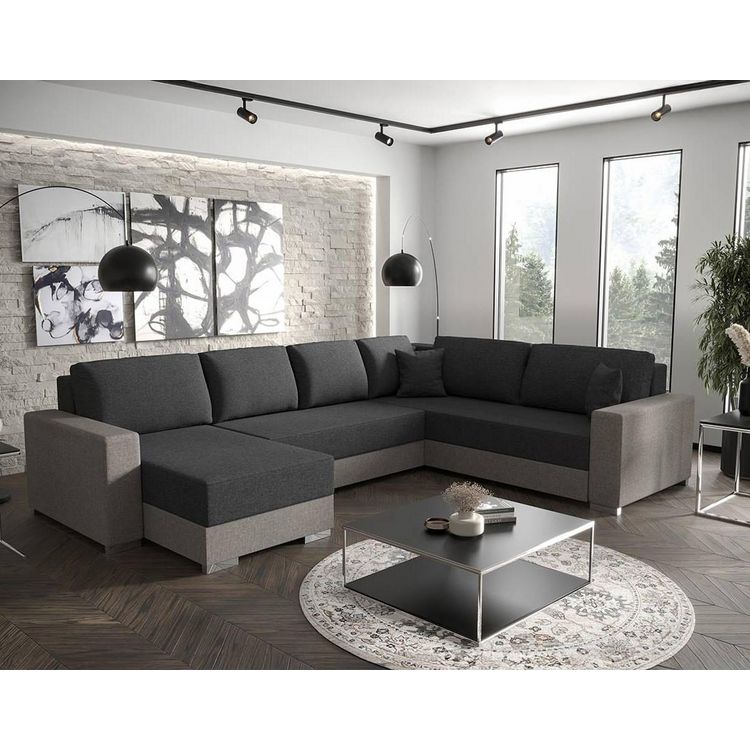 Epona - canapé panoramique d'angle réversible 7 places convertible avec coffre en tissu
