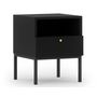 La table de chevet Felicia incarne le charme du design industriel avec son coloris noir élégant et ses finitions soignées. Large de 40 cm, elle est équipée d'une poignée sobre qui rend l'ouverture de son tiroir simple et agréable, ajoutant une touche fonctionnelle à son esthétique moderne. Son look épuré et intemporel en fait un choix parfait pour ceux qui souhaitent apporter une touche de caractère à leur chambre.