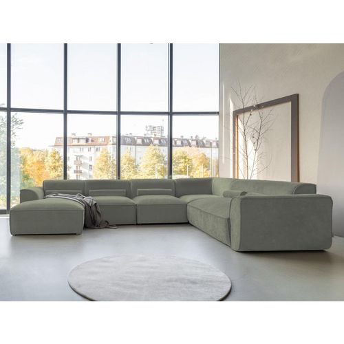 Le canapé modulable panoramique d'angle droit Felix est reconnu pour son confort exceptionnel. Avec ses 7 places, il invite votre famille et vos amis à se détendre lors de moments conviviaux devant un film ou pour un jeu de société. Ou bien simplement pour vous allonger très confortablement après une journée de travail. Il est idéal pour habiller une grande pièce à vivre avec ses lignes épurées et ses larges dimensions. Sa structure est composée de bois, de panneaux de particules et de panneaux de fibres. La fabrication européenne de ce meuble garantit une qualité durable. Ce canapé panoramique est également livré avec des coussins décoratifs de dimensions 59 × 11 cm pour encore plus de confort.