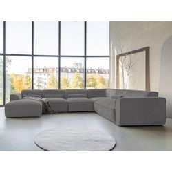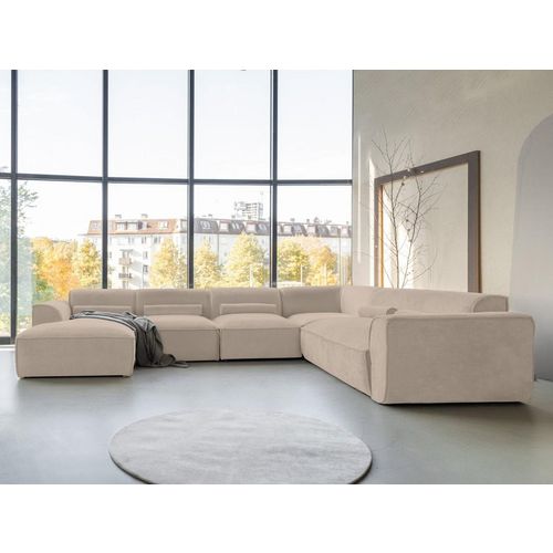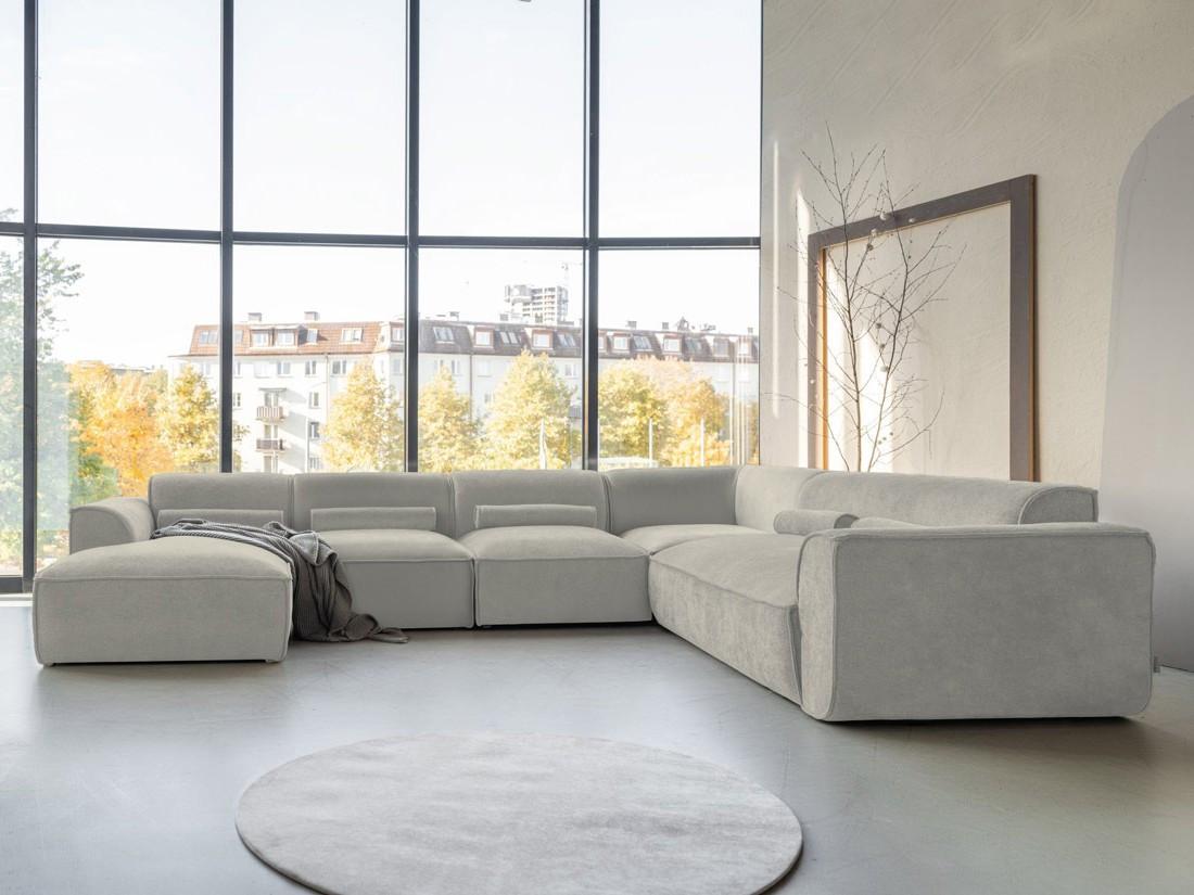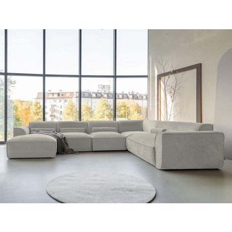 Felix - canapé modulable panoramique d'angle droit 7 places en tissu texturé