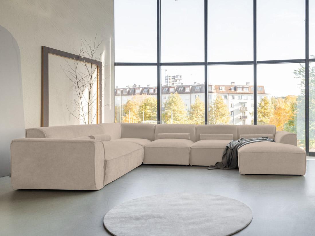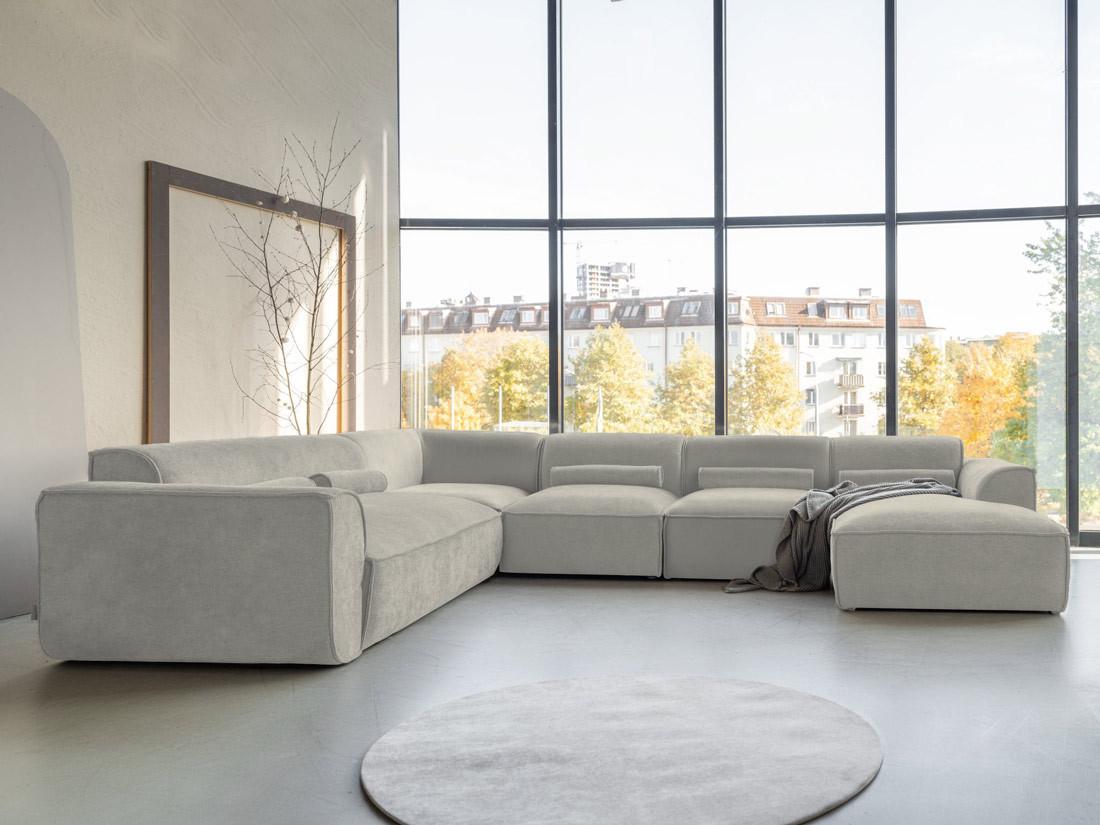 Felix - canapé modulable panoramique d'angle gauche 7 places en tissu texturé