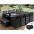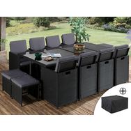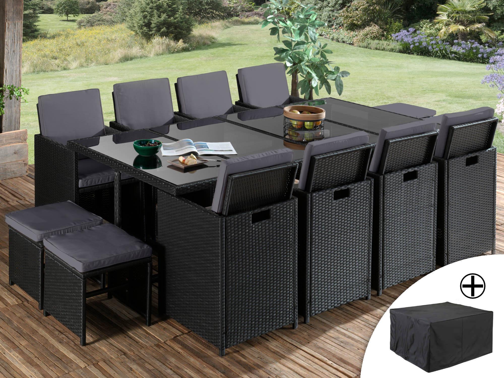 Fira - salon de jardin encastrable 12 places - en résine tressée - noir avec coussins gris + housse de protection