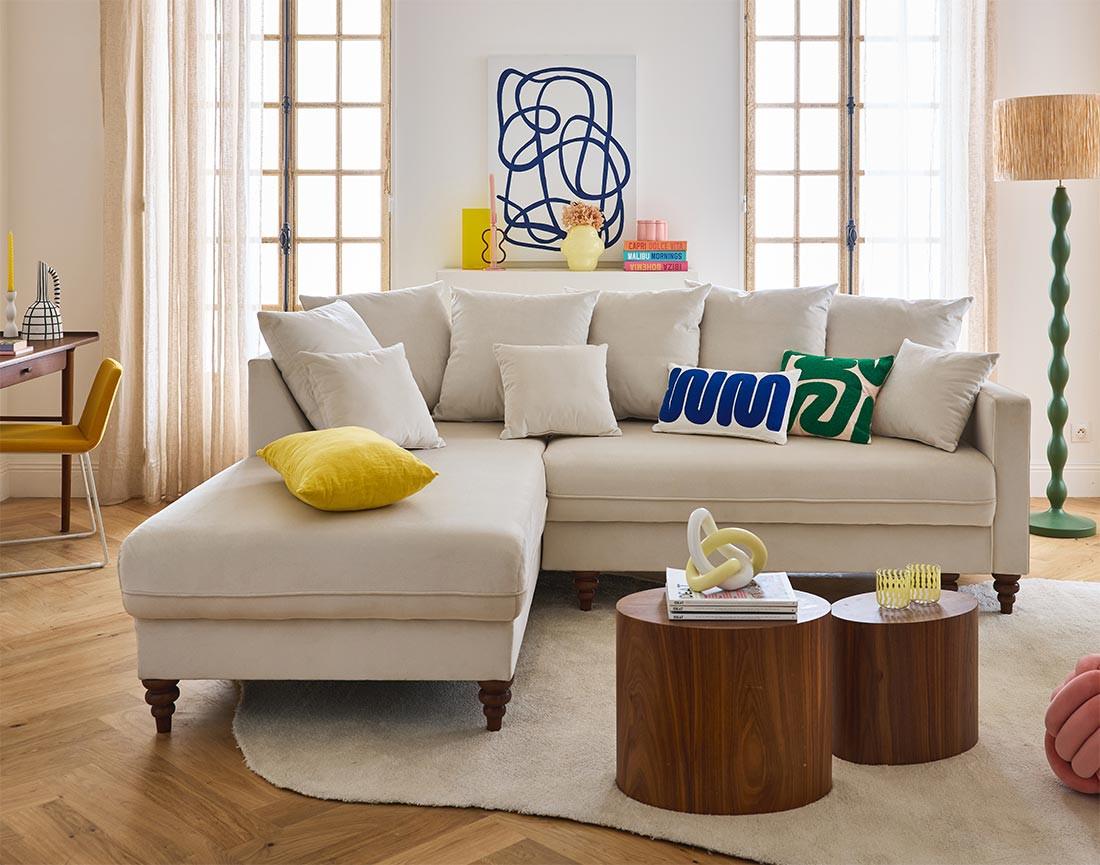 Choisissez un canapé luxueux pour votre salon avec le modèle à angle gauche Flamingo